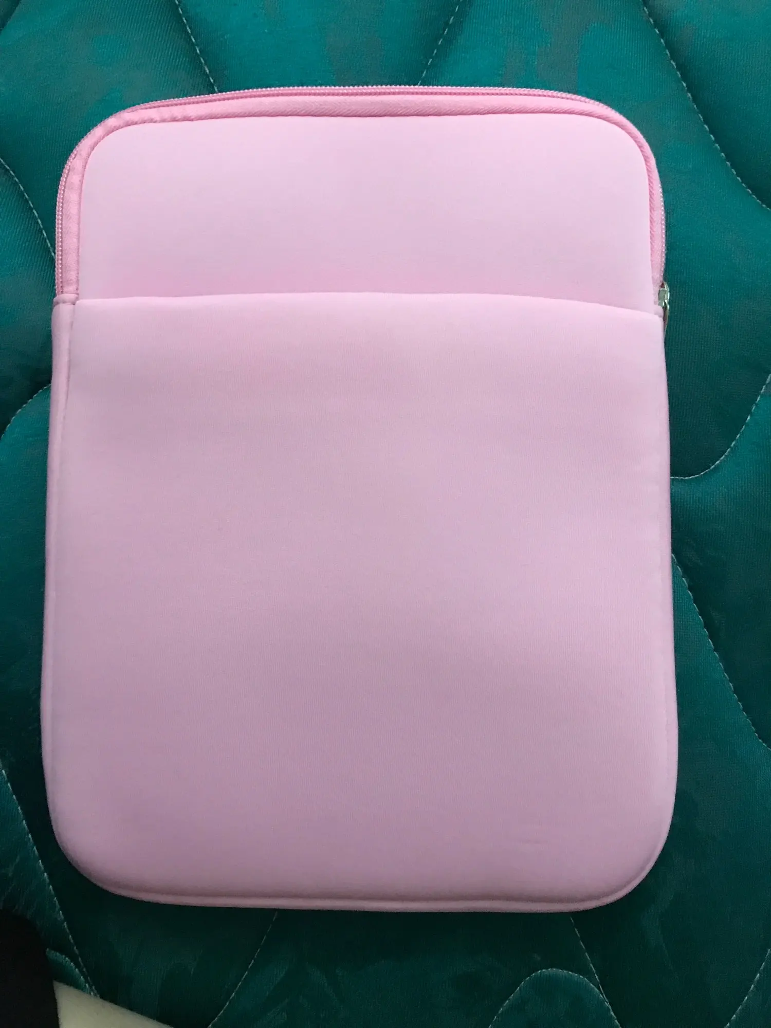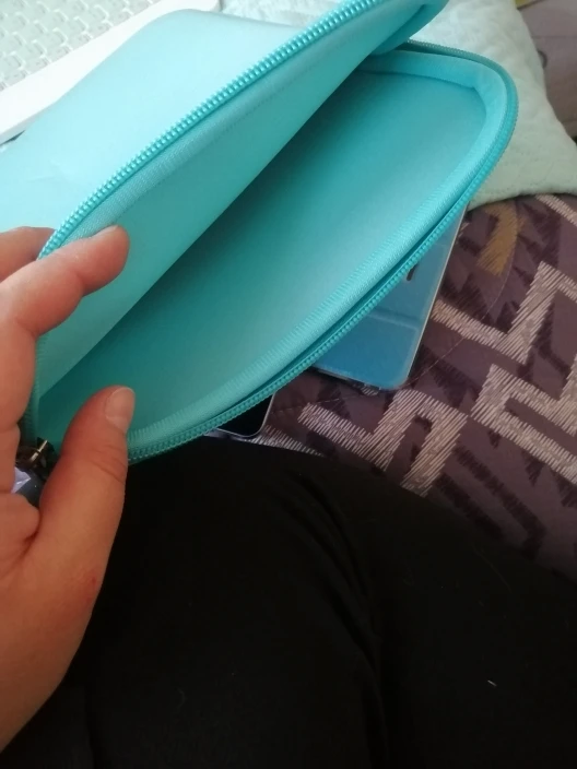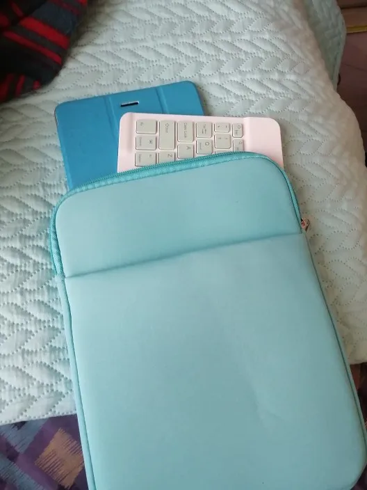 Красивый цвет, подкладка и передний карман на молнии. Купил, чтобы положить мой планшет Galaxy S6 Lite. Большой карман имеет хорошее пространство, подходит для моего планшета, клавиатуры и коврик для мыши свободно ничего, в маленький карман Положите мою мышь и подходит для большинства вещей. Мне понравилось