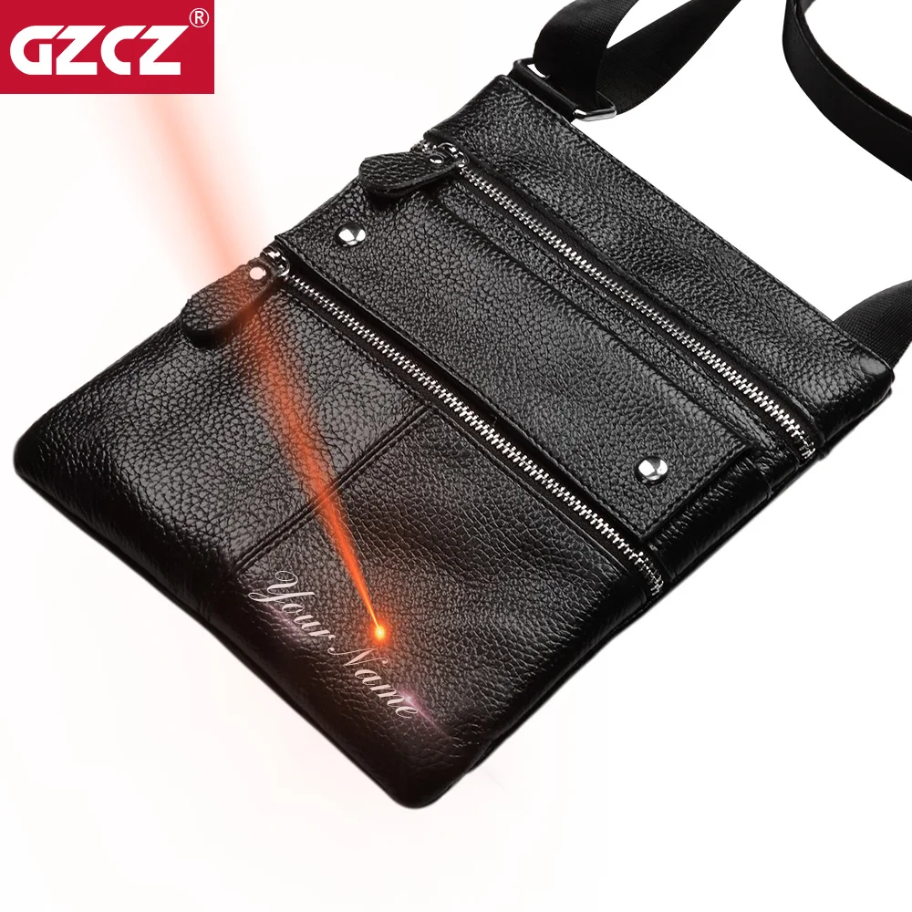 Кожаная мужская сумка GZCZ известного бренда, Повседневная Деловая мужская сумка-мессенджер, Высококачественная сумка через плечо на молнии, мужские сумки для Ipad