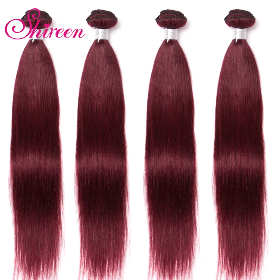 Прямые бразильские волосы Shireen, пучки Красного плетения, предварительно окрашенные, 3 шт., бордовые, красные, винные, 99j, человеческие волосы для наращивания, Remy, плетеные волосы