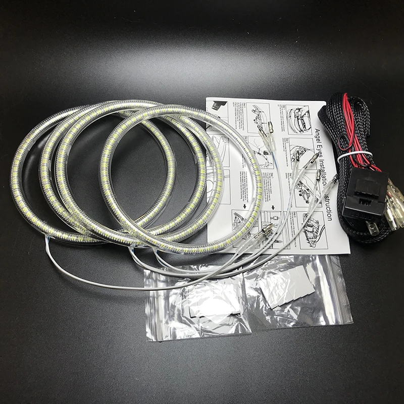 1, высокое качество SMD 3528 superЯркость светодиодный 2, используется для автомобильных фар-маркеров-ангельских глаз 3, всего 4 кольца или 2 кольца для ближнего и дальнего света; 4, агрессивный, но чистый и стильный светодиодный светильник. Идеально подходит для вашего биммера, если вы приобрели стандартную базовую посылка, но хотите модернизировать свой автомобиль до более роскошного вида.Особенности: