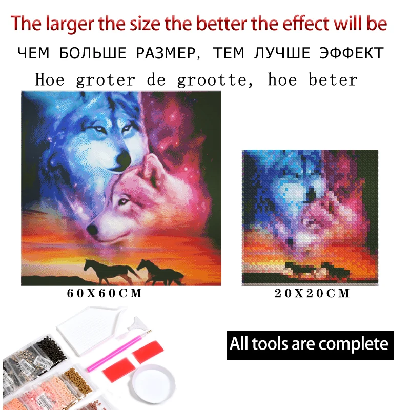 Полный 5D Diy Daimond картина "Волк и звезды" 3D Алмазная мозаика к...