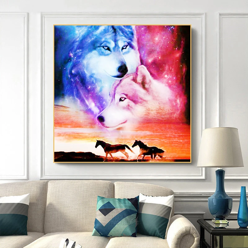 Полный 5D Diy Daimond картина "лошадь, волк" 3D алмазов картина круглые стразы Diamant живопись вышивка Животные Мозаика Декор