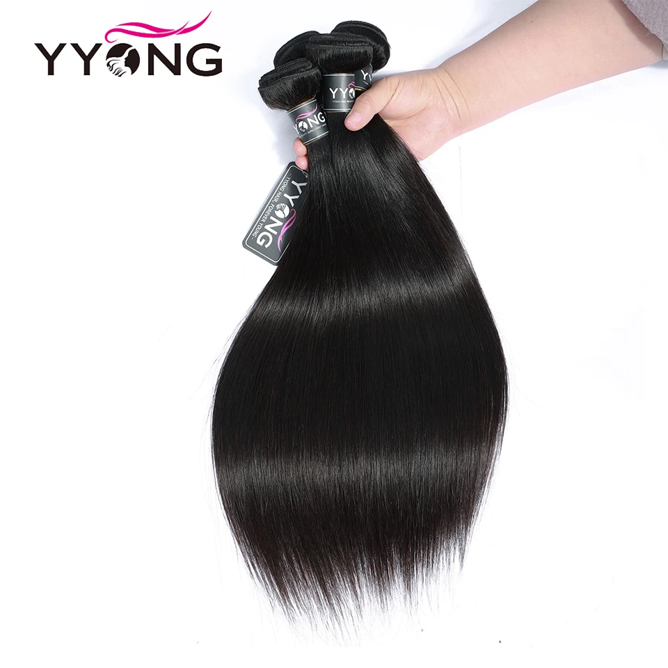 Прямые перуанские пряди волос Yyong, пряди из 100% человеческих волос, 4 пряди, натуральный цвет, наращивание волос без повреждений, 8-26 дюймов, можно повторить