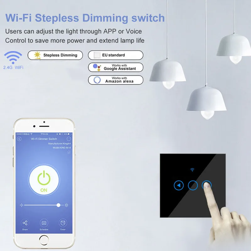 Новый сенсорный диммер, панель из хрустального стекла, пульт дистанционного управления Wi-Fi, работает с Alexa Google Ewelink, Модуль Автоматизации 220 В