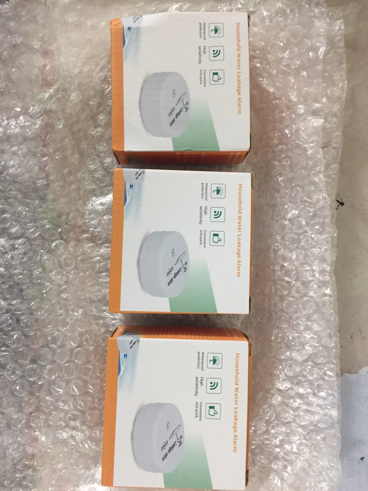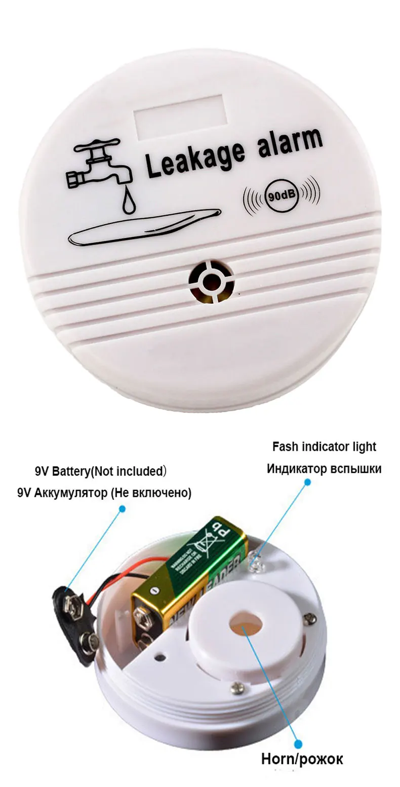 2 из 3 я проверила на мокрой поверхности, все работает, установила под ванну и под посудомойку. 3ий пока не нужен, но нет оснований не доверять. Все хорошо. Аккумуляторы покупаем сами, такие же, как в детектор дыма.
