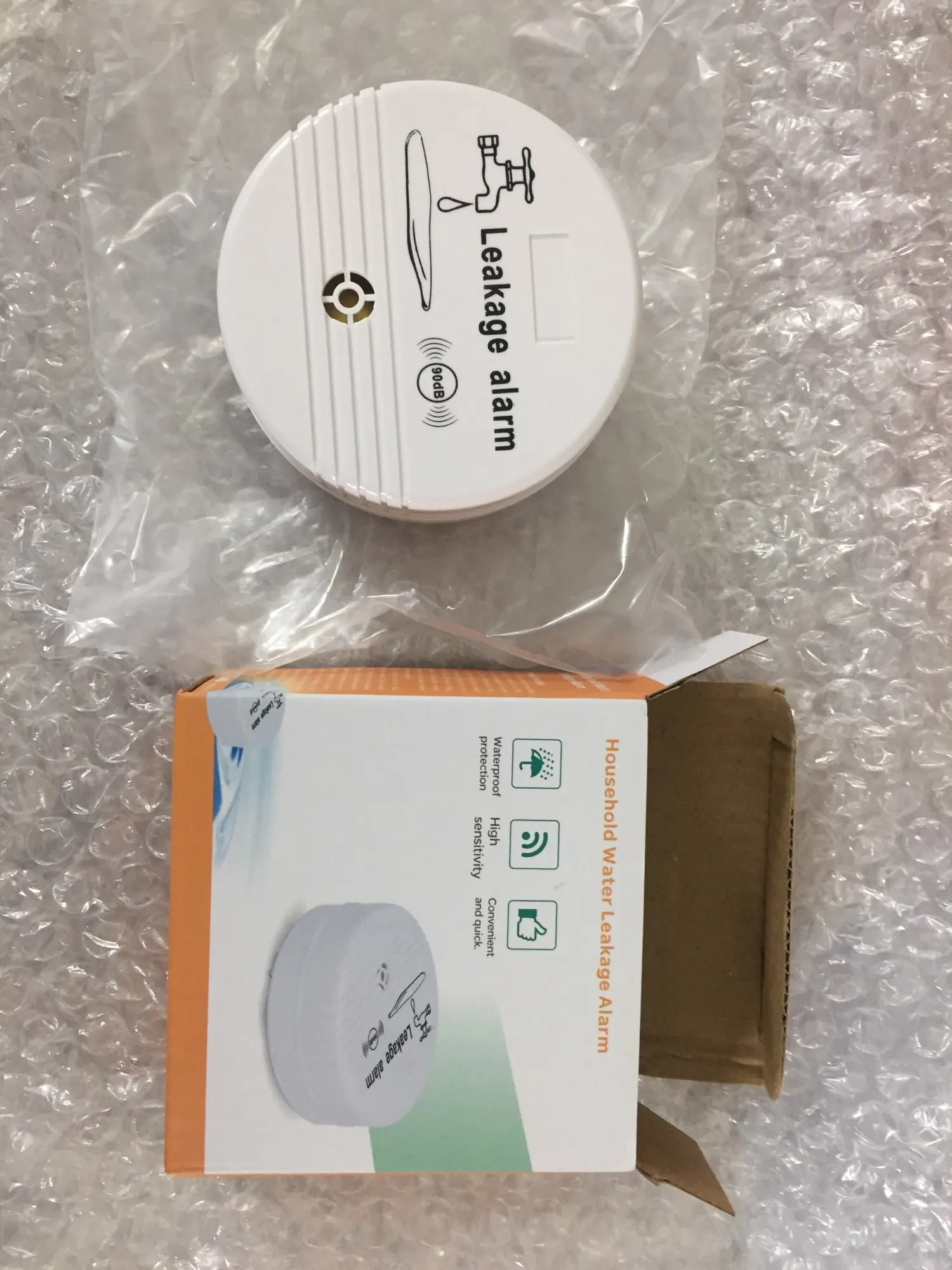 Упакован хорошо, все целое. Поставил «крону» 9в, сигнал громкий, поставил под аквариум и на кухне.