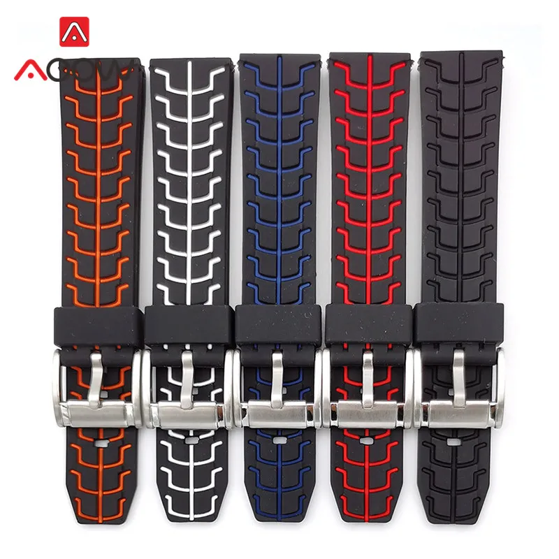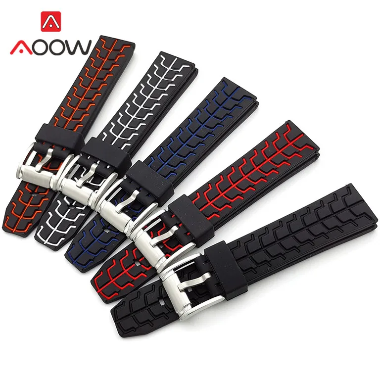 Двухцветный силиконовый мужской спортивный ремешок для часов 20 мм 22 мм 24 мм водонепроницаемый сменный ремешок для дайвинга синий черный аксессуары для часов