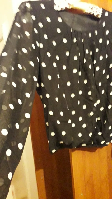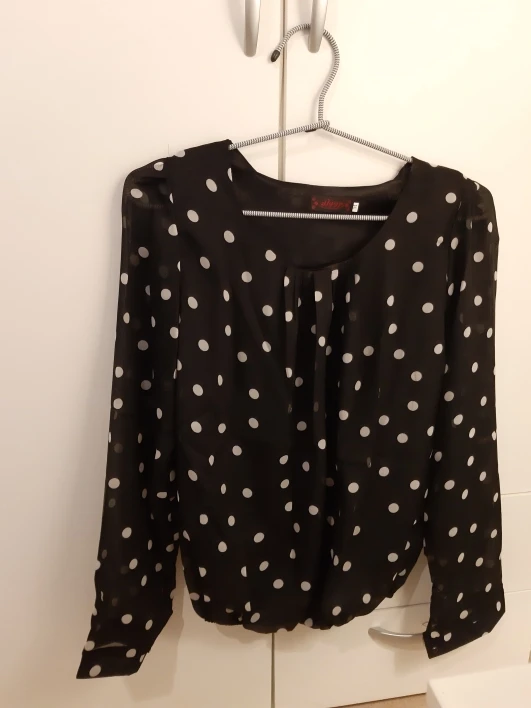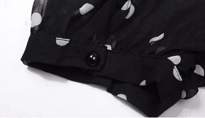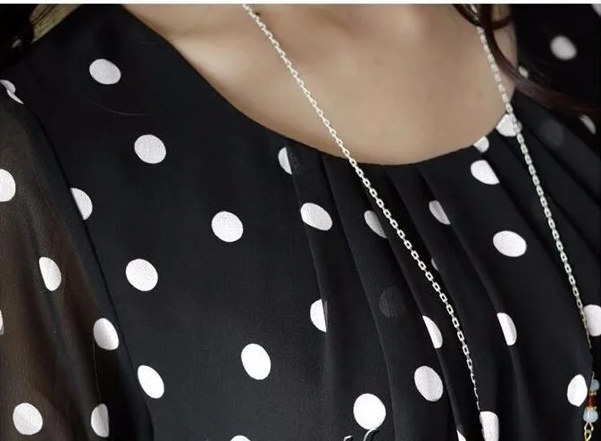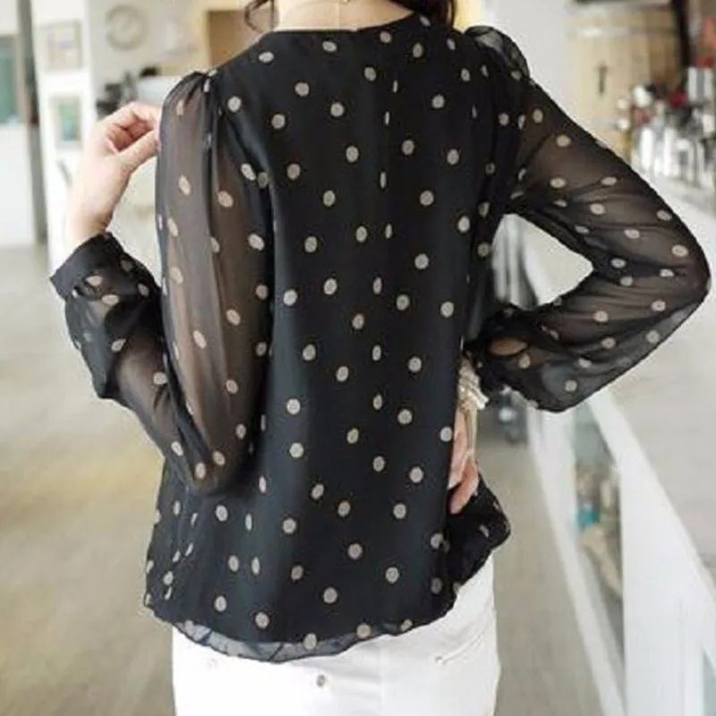 Женская шифоновая блузка с длинным рукавом, круглым вырезом и принтом в горошек