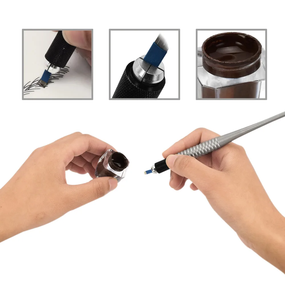 Микро-ручка для бровей, набор с иглой, пигмент для бровей, для прак...