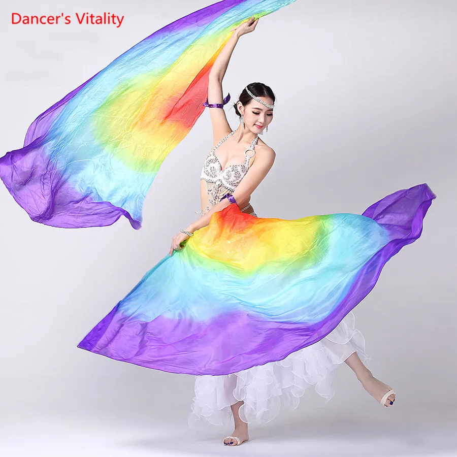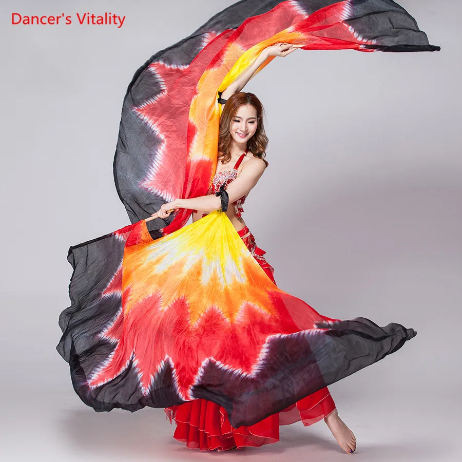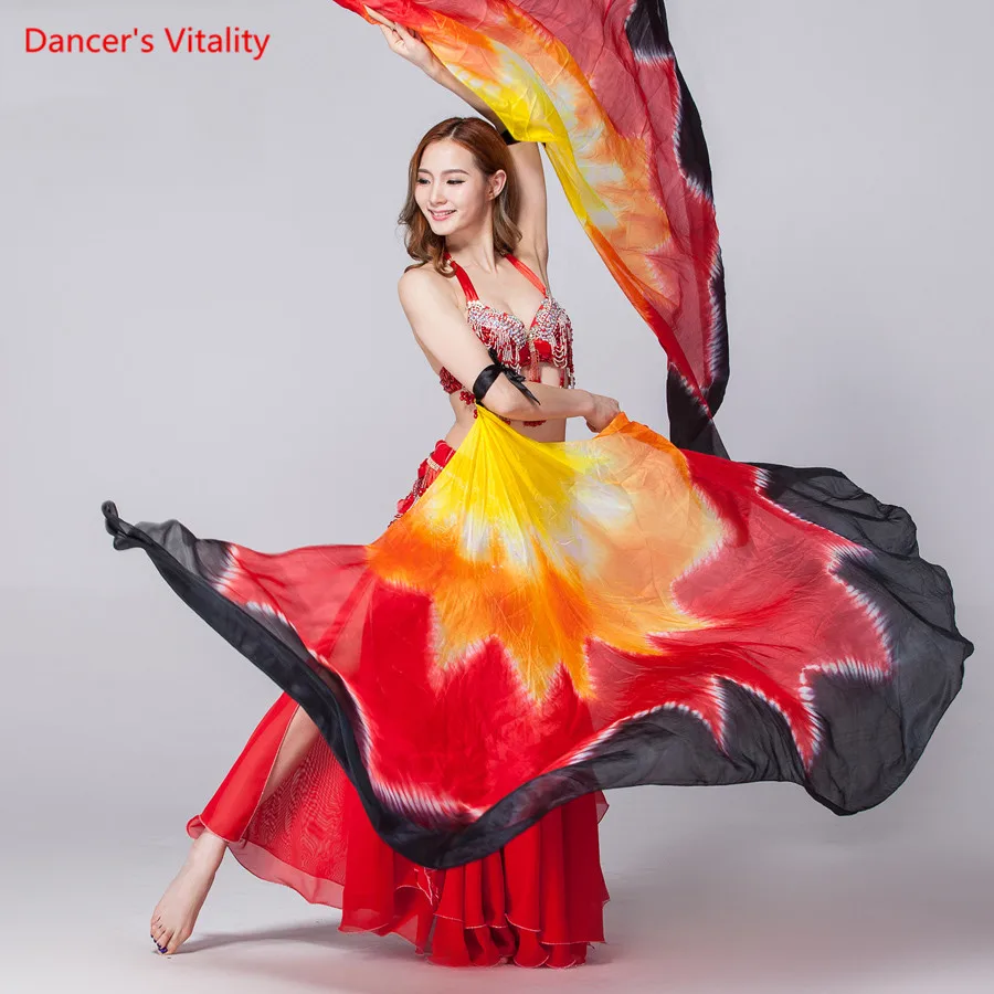 100% шелк реквизит для выступлений на сцене 1 пара полукруглая шелковая вуаль для танцев праваялевая рука Золотая Фата для танца живота цвет крылья Исиды