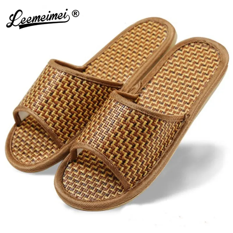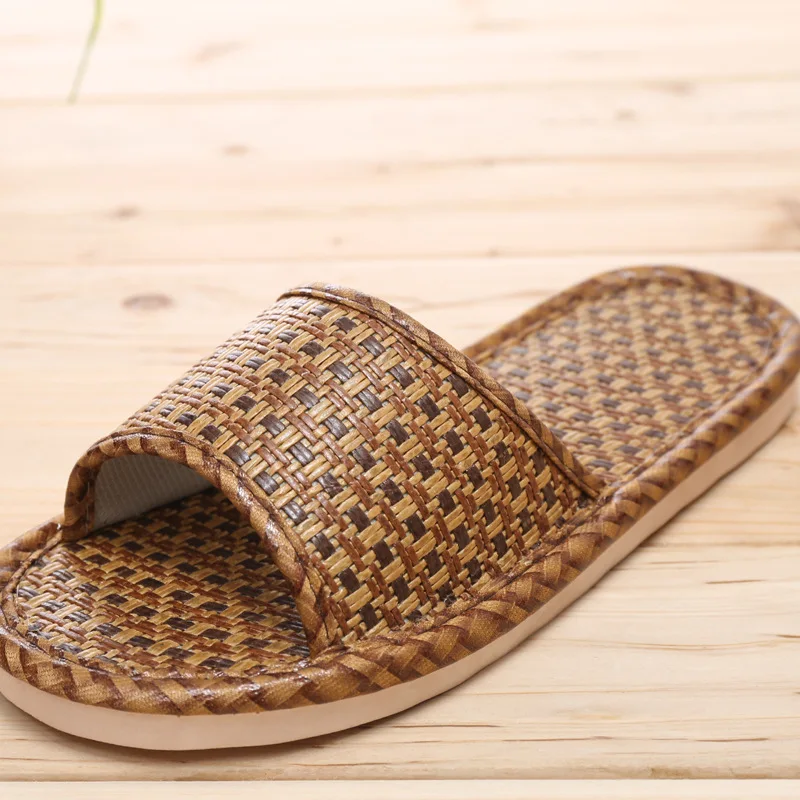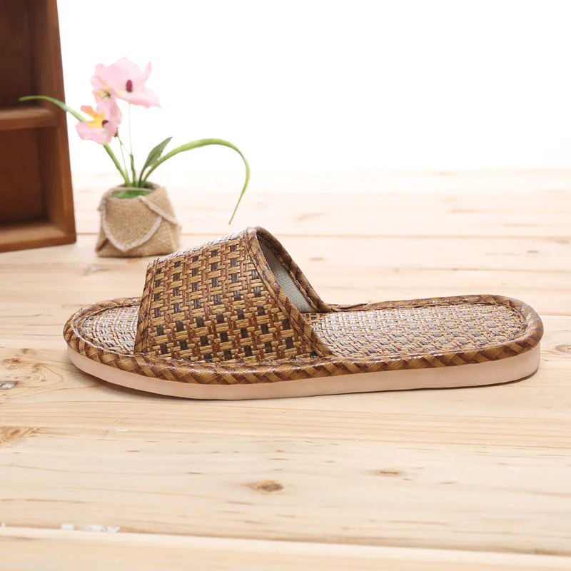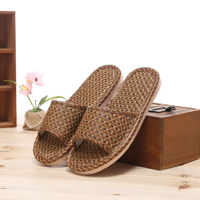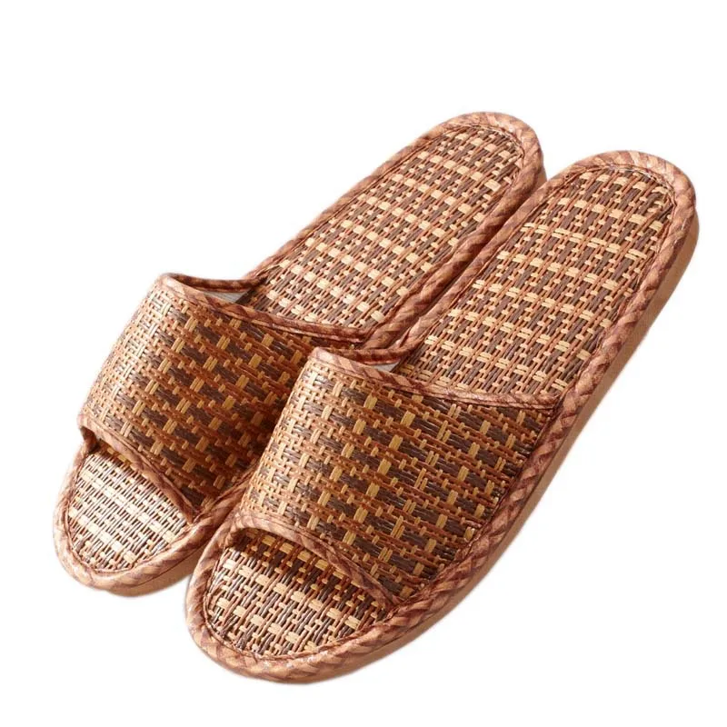Летние домашние тапочки из ротанга; Домашняя обувь; Тапочки льняные; Нескользящие; Богемные Вьетнамки; Женские и мужские сандалии