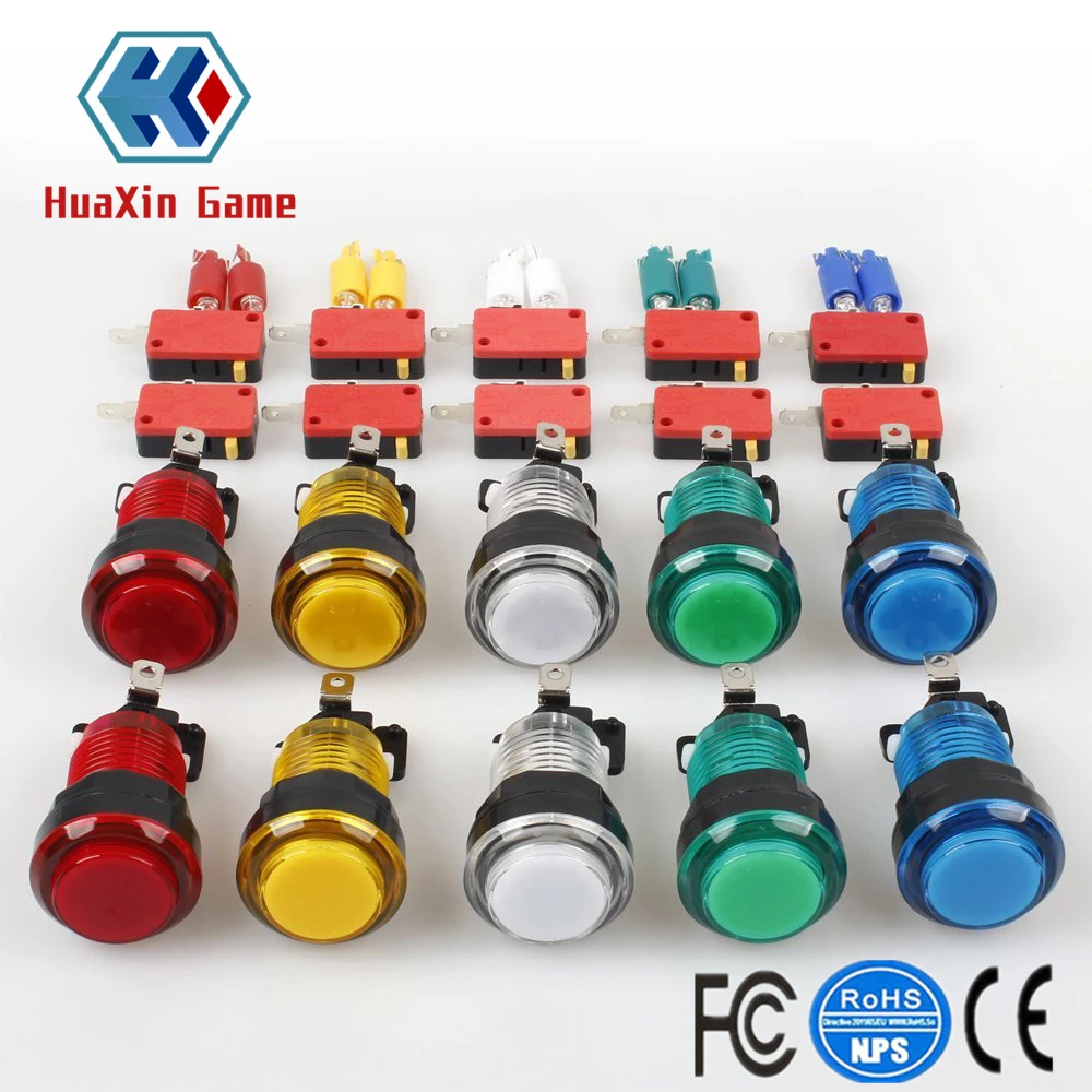 Новые прозрачные светящиеся аркадные кнопки, 10 шт., 12 В, С микропереключателем для игр Jamma Mame, 5 цветов на выбор