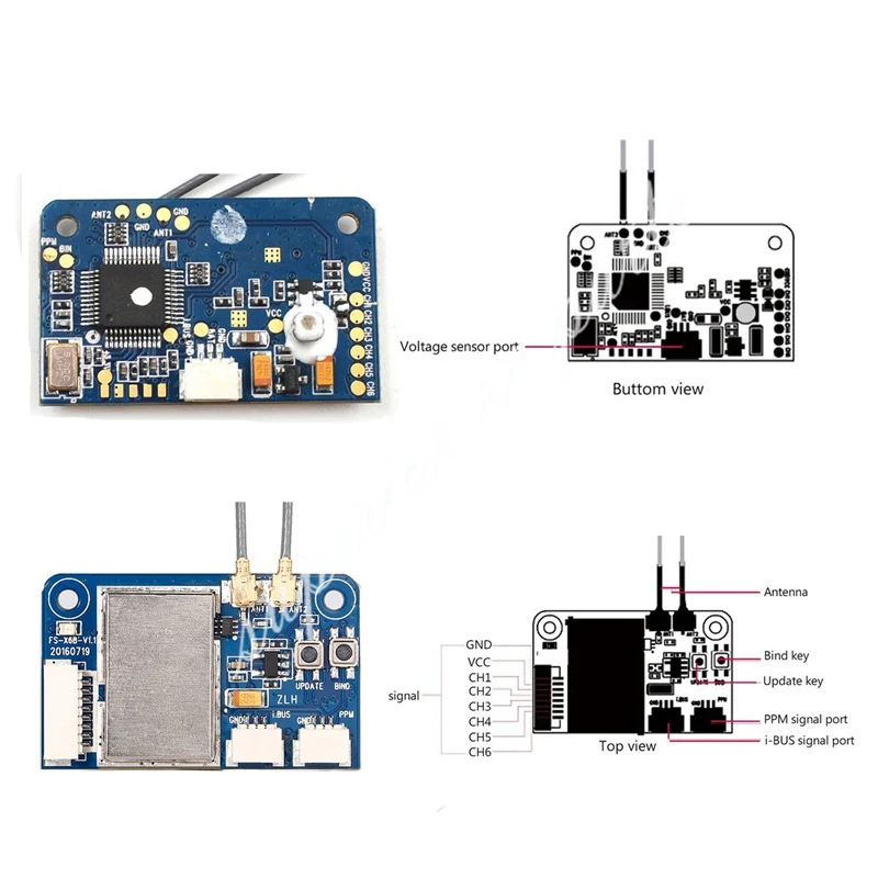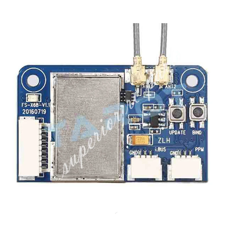 Flysky FS-X6B 2,4G PPM i-BUS 6CH мини-приемник для радиоуправляемого квадрокоптера FS-i10 FS-i8 FS-i6 FS-i6s FS-i6x FS-i4 FS-i4x передатчик Примечание: Подходит для FS-i10,FS-i8,FS-i6,FS-i6s,FS-i6x,FS-i4,FS-i4x и т. Д. Радиоуправляемый передатчик серии FS. Не включает Пульт дистанционного управления Речь идет о 6-канальный двухполосный приемник предназначен для многороторных летательных аппаратовИспользуйте протокол AFHDS 2A (Автоматическая цифровая система с частотой) и двойную всенаправленную антенну с превосходными методами шумоподавления.FS-X6B поддерживает выход 6 канал ПВМ, стандартный выход PPM и i-BUS Поддержка до 18 каналов наряду с надежным интерфейсом датчика напряжения. Спецификация:Размер: 36*21*7,8 мм/1,5*0,8*0,4 дюймовВес: 5,1 гПорты:Порт сигнала PWM: GND, VCC. Выходы каналов 1-6 ШИМ.Порт сигнала PPM: выход стандартного сигнала PPM.I-BUS порт сигнала: выходы сигнала i-Bus, до 18 каналов.Порт датчика напряжения: внешний датчик мощности (разъем 1S-4S) + от 0 до + 18 в. Переплет:1. Чтобы подготовить передатчик для привязки информации, обратитесь к руководству пользователя вашего передатчика.2. Включите приемник, Удерживая кнопку привязки. Если светодиодный приемник мигает, это означает, что он ввел режим привязки. После успешного переплетения передатчик автоматически вернется в предыдущее меню. При успешном переплете светодиодный приемник прекратит мигать и останется твердым.3. Проверьте, работает ли вся модель и приемник, как ожидалось. Если что-то не работает так, как ожидалось, перезагрузите эту процедуру с самого начала. Совместимые передатчики:Приемник FS-X6B совместим со всеми передатчиками AFHDS 2A, например, FS-i10,FS-i8,FS-i6,FS-i6S,FS-i6X,FS-i4,FS-i4X. Посылка включает: 1 * FS-X6B приемник