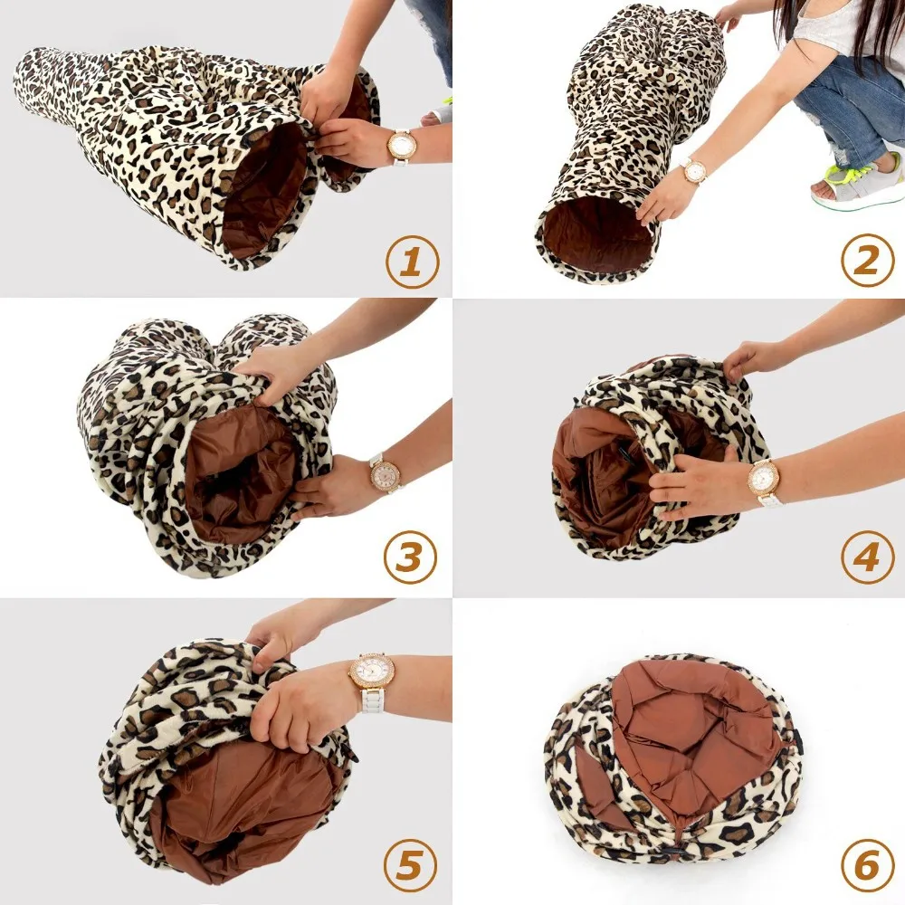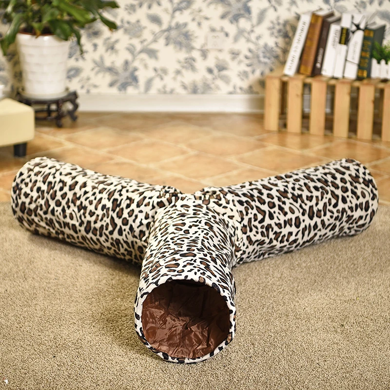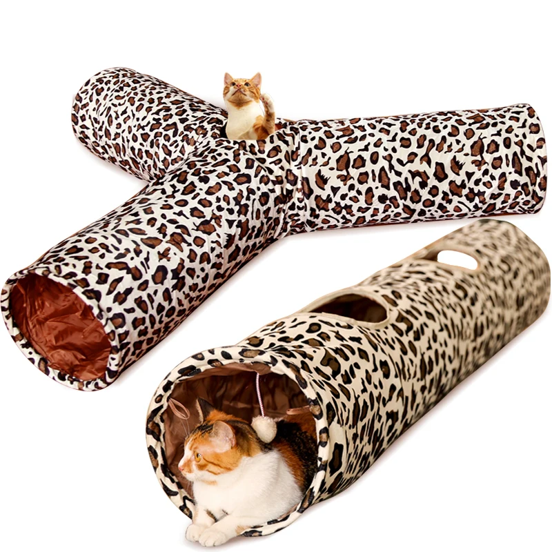 Туннель для домашних животных с 3 отверстиями, игровая игрушка для котят с леопардовым принтом, складная трубка-туннель для маленьких, средних и больших кошек и кроликов