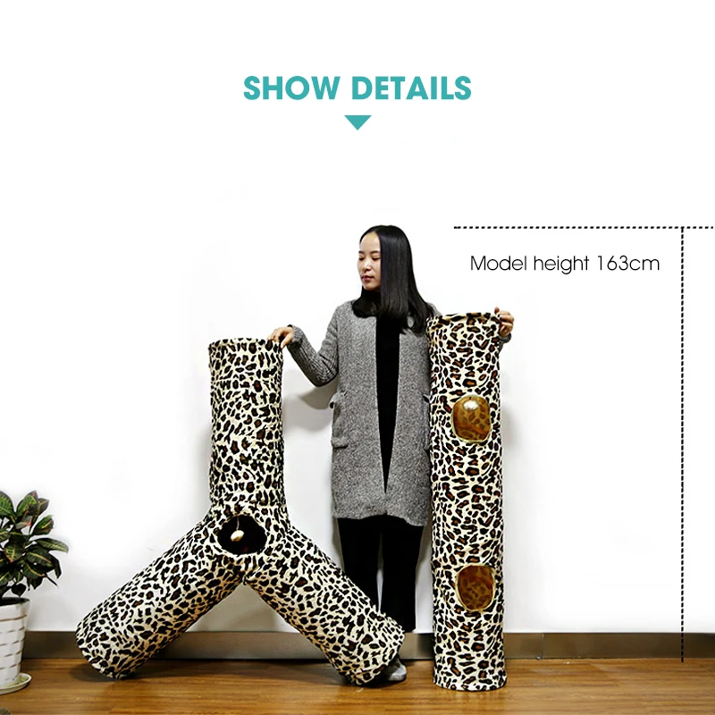 Туннель для домашних животных, 3 отверстия, леопардовая морщинка, котенок, игрушка для игры с мячом, складная туннельная трубка для маленьких средних и больших кошек, кролик