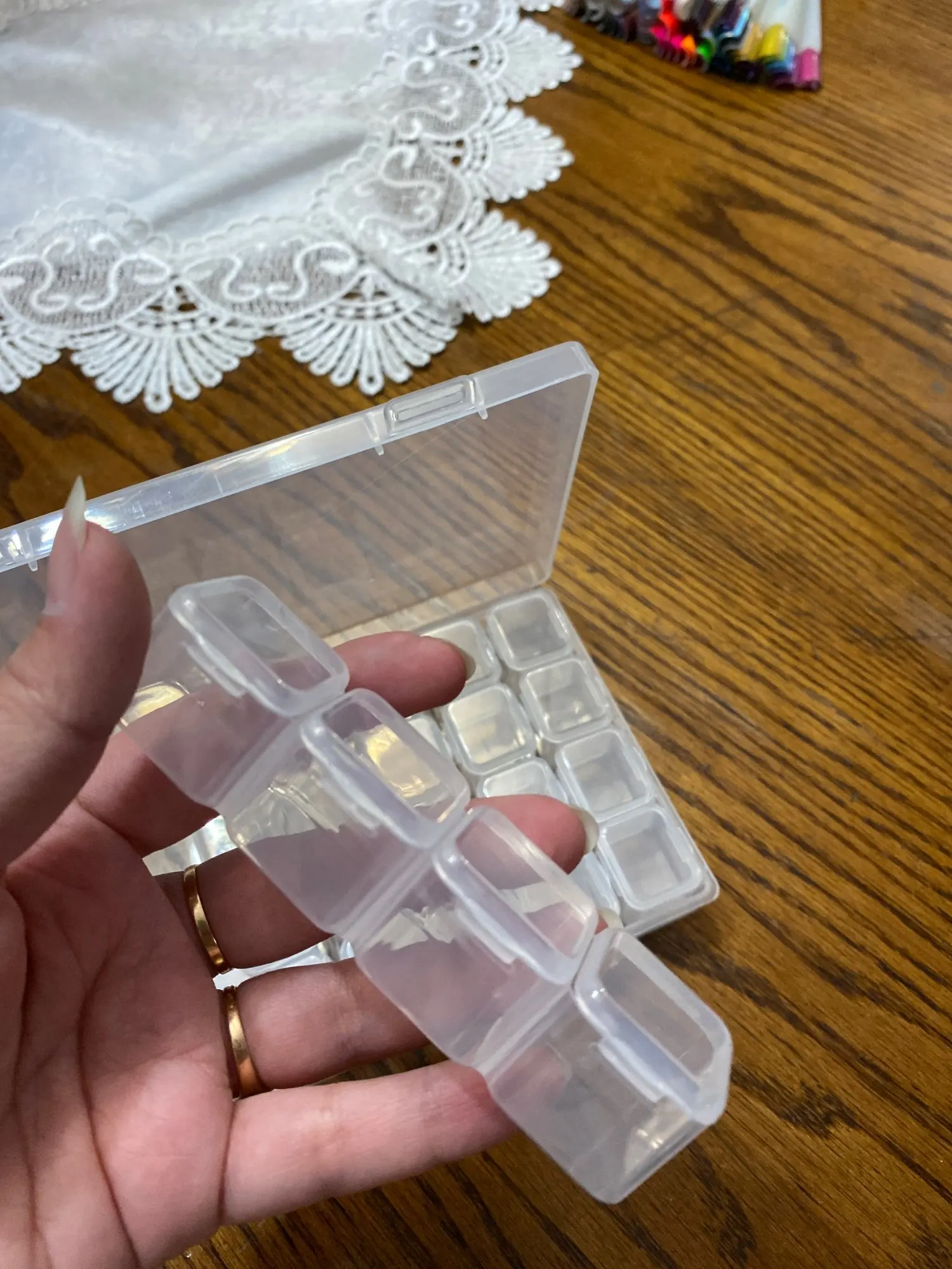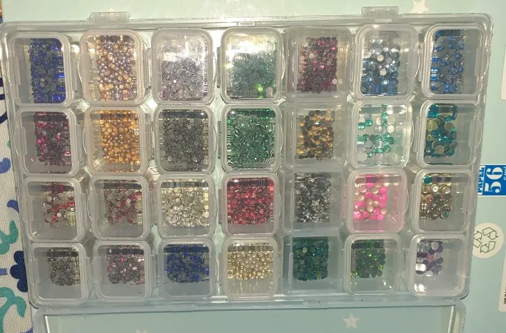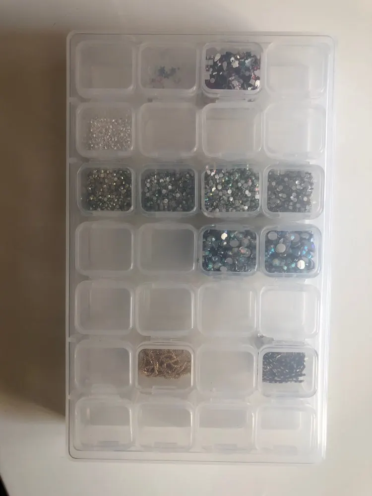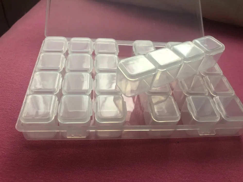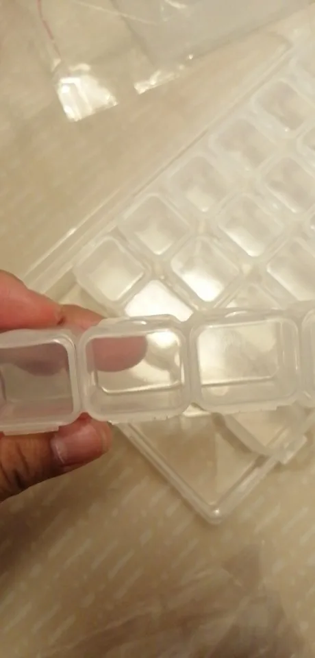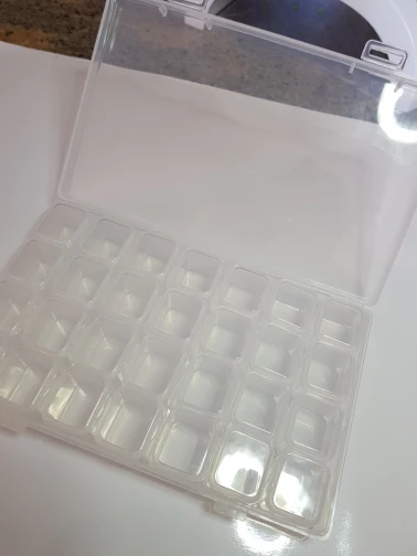 Когда я только получил его, я думал, что он слишком мал для моих страз, но когда я действительно использовал его, я увидел, что маленькие отсеки 4 в одном рядом, они не являются индивидуальными маленькими лотками. Я был в состоянии использовать их, чтобы скомбинировать мой камень в группы из четырех и удерживать больше, чем я первоначально думал, поэтому я буду покупать больше. Мне это нравится, потому что я гораздо более организованный.