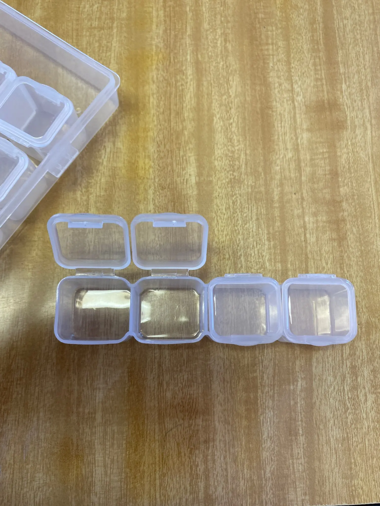 Контейнеры очень хорошие. В коробке, которая закрывается отдельно, находятся 28 ячеек. (7 штук по 4 в каждом ряду) Крепятся прочно. Закрываются плотно. Материал прозрачный. Рекомендую людям, увлекающимся творчеством для хранения красок либо страз для мозаичной техники.Сиоимость 123,32 рублей.