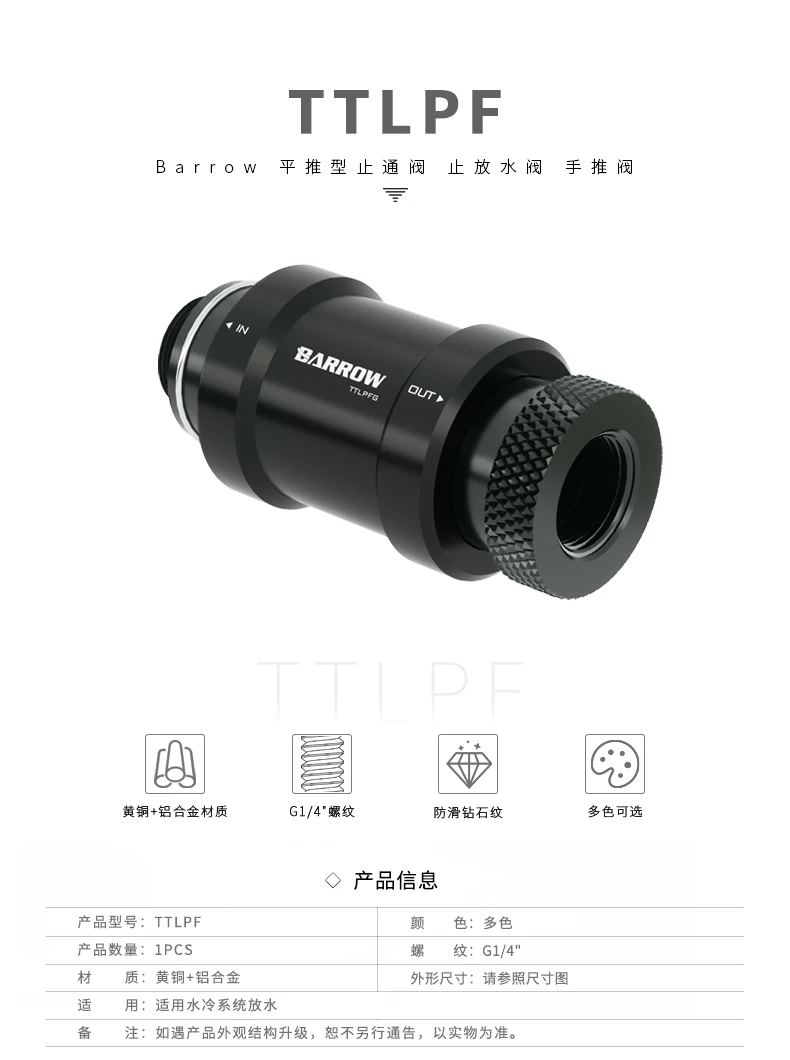 Переключатель Barrow ручной нажимной клапан G14, резьба штекер-гнездо, плоский нажимной клапан остановки воды, металлический переключатель, фитинг системы охлаждения