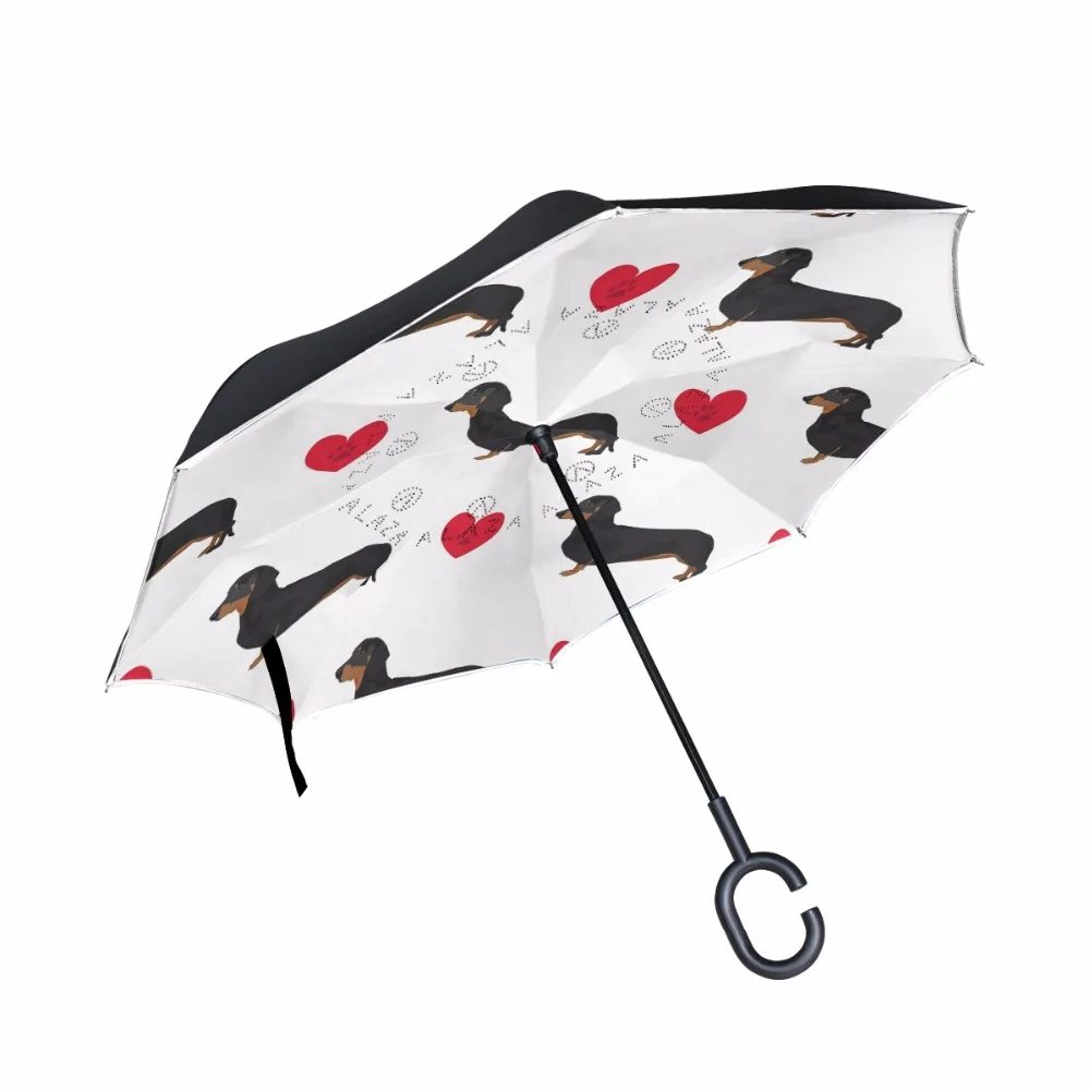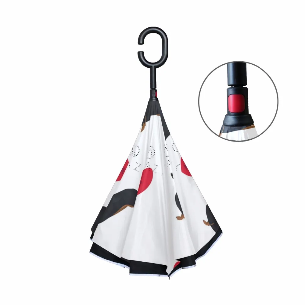 Яркий фон такса собака бесшовный креативный C-образный крюк Ручка обратный складной двухслойный ветрозащитный Дождливый Солнечный зонт