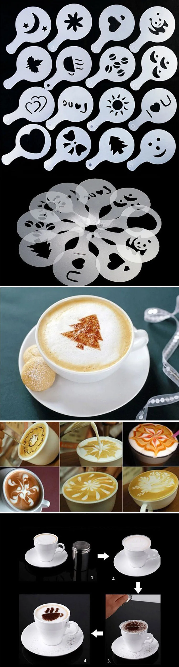 Трафареты для кофе 16 шт., трафареты для баристы капучино, художественного рисования, формы для печати кофе, аксессуары для кофе, кафе