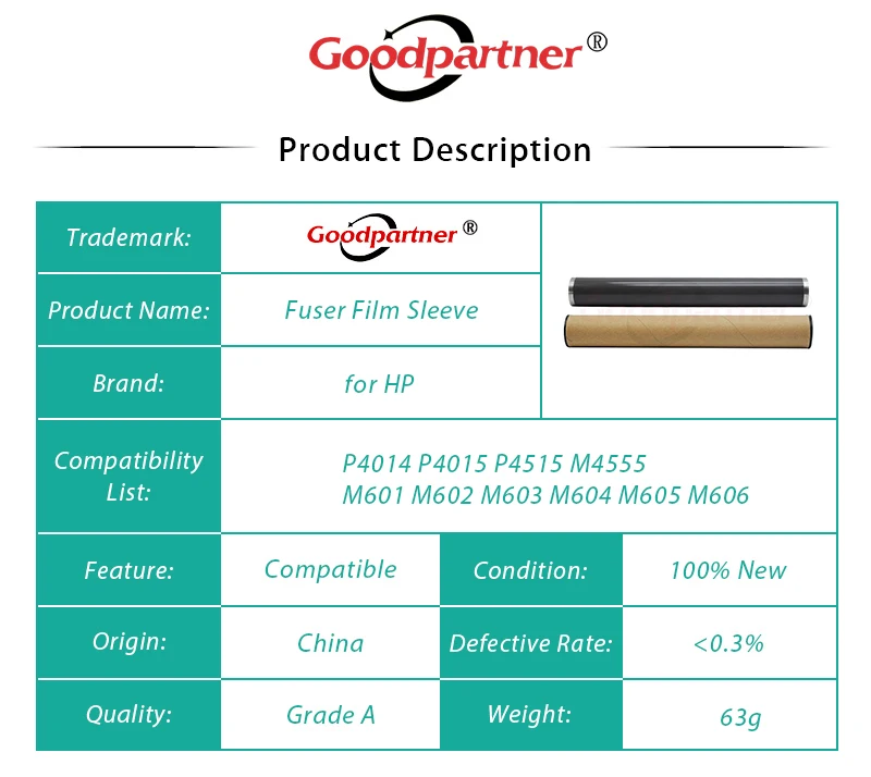 1X RM1-7395 RM1-4554 RM1-8395 установка термозакрепляющего устройства пленочный рукав для струйного принтера HP LaserJet P4014 P4015 P4515 M4555 600 M601 M602 M603 M604 M605 M606 M630