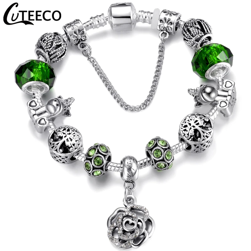 Женский браслет на запястье CUTEECO, браслет из бусин в виде единорога, кулон в виде дерева