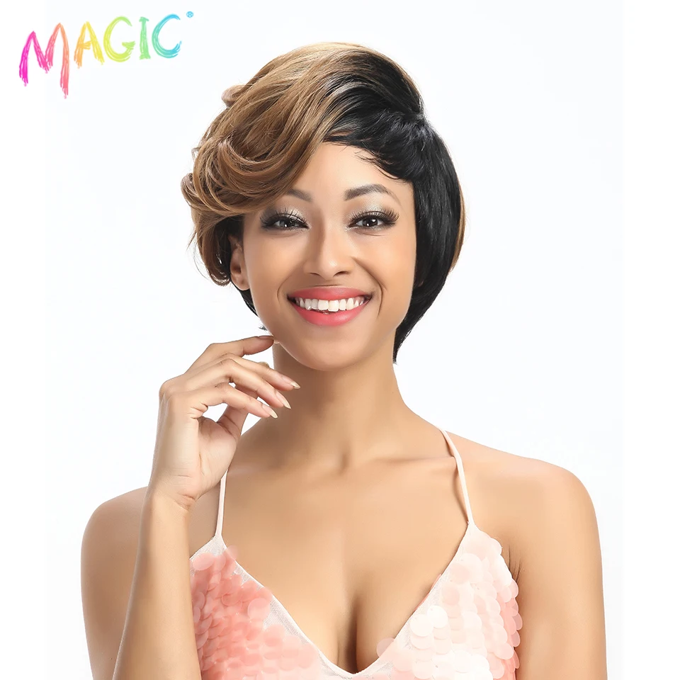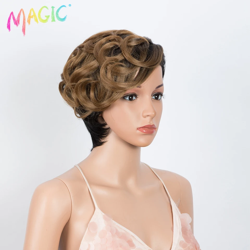 Волшебные синтетические парики для женщин, волнистые, 10 дюймов, женские парики, короткие синтетические волосы, светлый парик, термостойкие волосы, бесплатная доставка