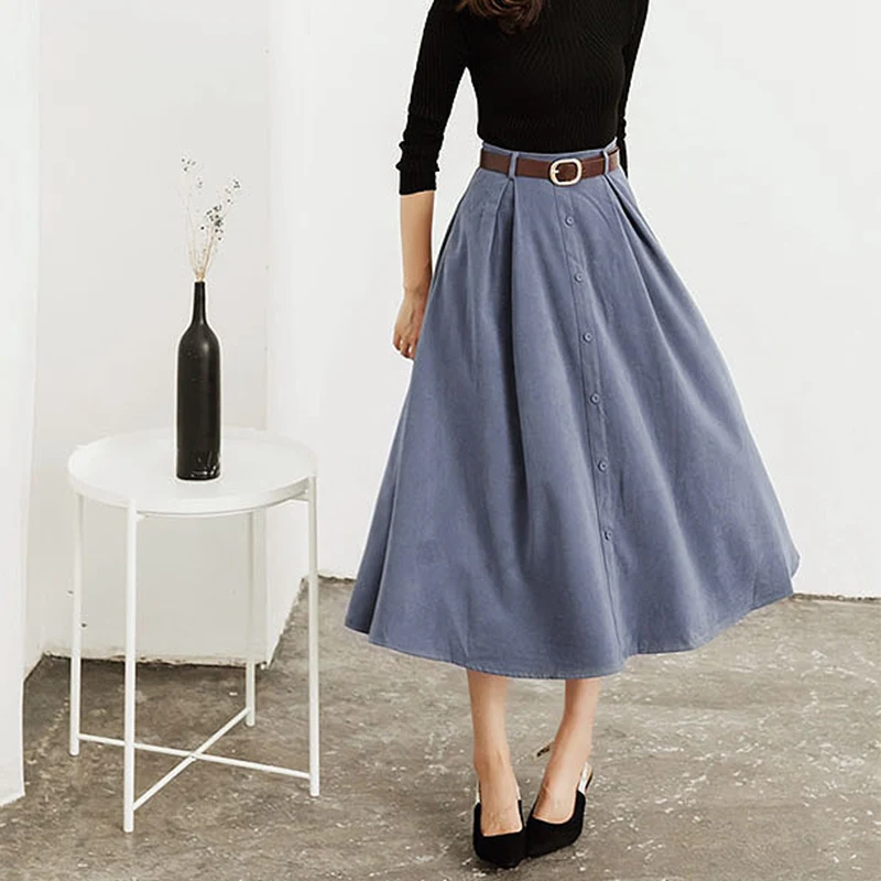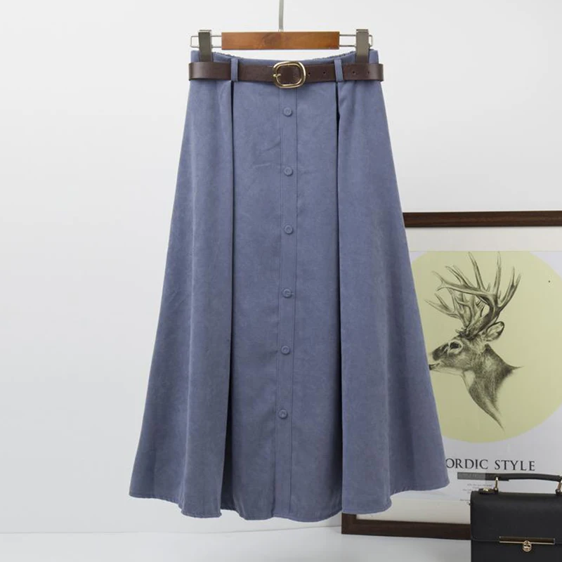 Женская замшевая юбка-трапеция TIGENA, элегантная длинная юбка на пуговицах, с поясом, с высокой талией, синяя, желтая, хаки, черная, Осень-зима 2020