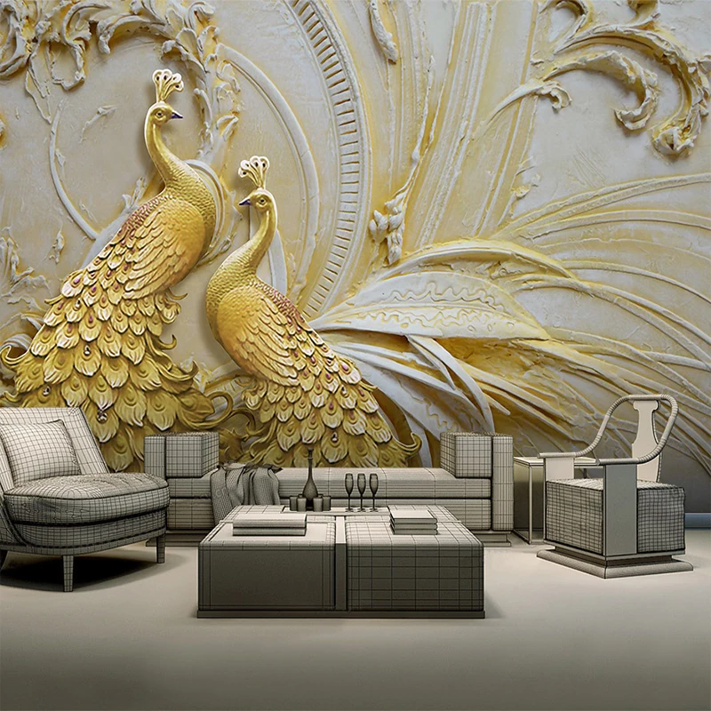 3D тисненые обои с золотым павлином для стен, рулон для гостиной, ТВ, дивана, фон для стен, домашний декор, настенное покрытие