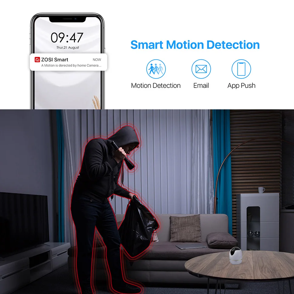 IP-камера купольная ZOSI, 2 МП, 1080p, HD, беспроводная, Wi-Fi