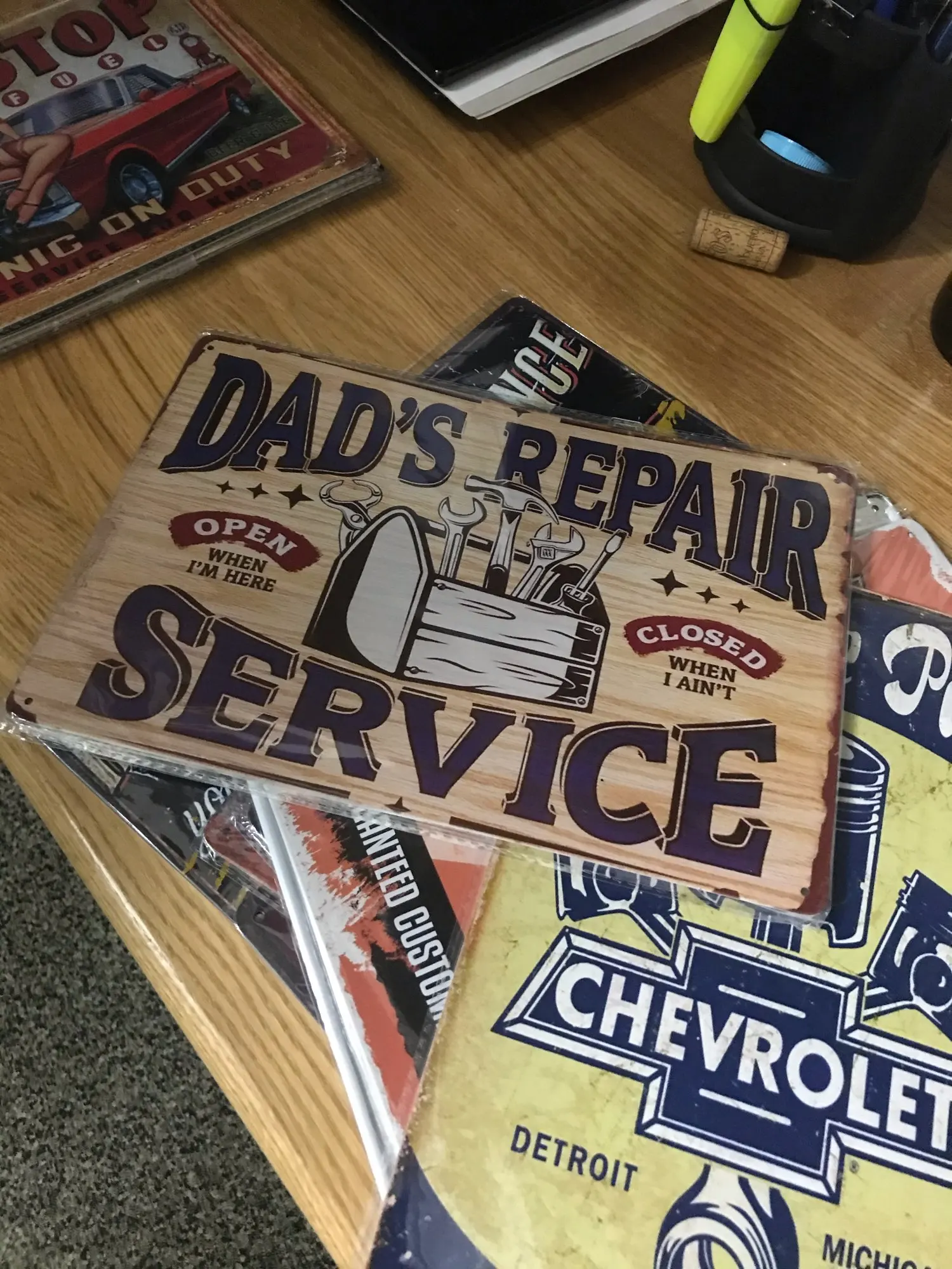 Таблички супер. Качественные и красивые. Всё как в описании магазина. Гладкие, без выдавливания. До мск шли 3 недели. Забрал в пятерочке. Упаковка норм, пришли не гнутые. Попробовал закрепить на двухстороннюю клейкую ленту, проклеил её по периметру (Ленту тоже заказал на Али) типа скотча, чтобы стены не сверлить, держаться крепко уже три недели. В общем, очень давно хотел такие таблички, гараж украсить, но не решался заказать.... теперь очень доволен!!! Думаю, друзья будут в восторге. Гараж.....:)))