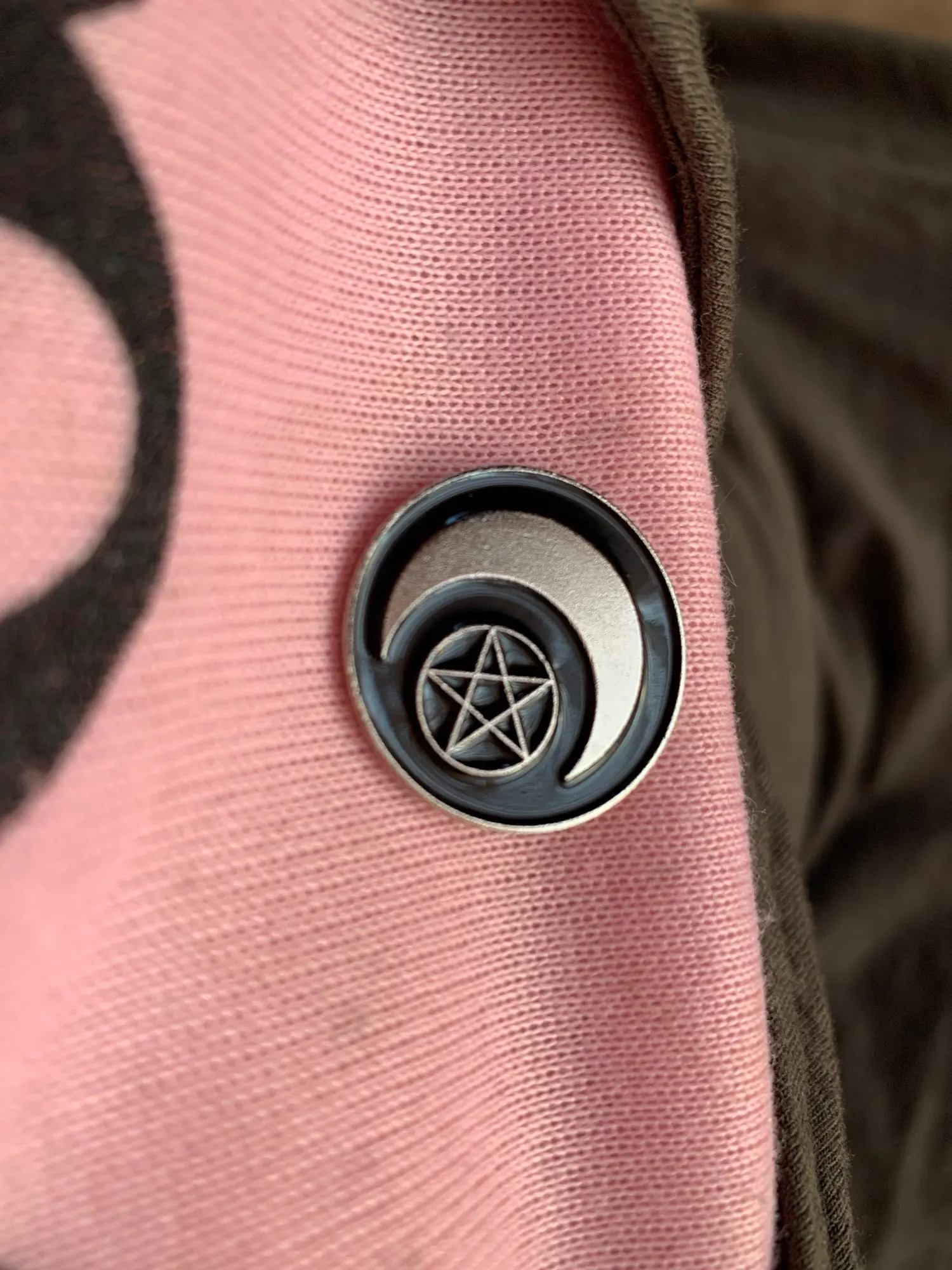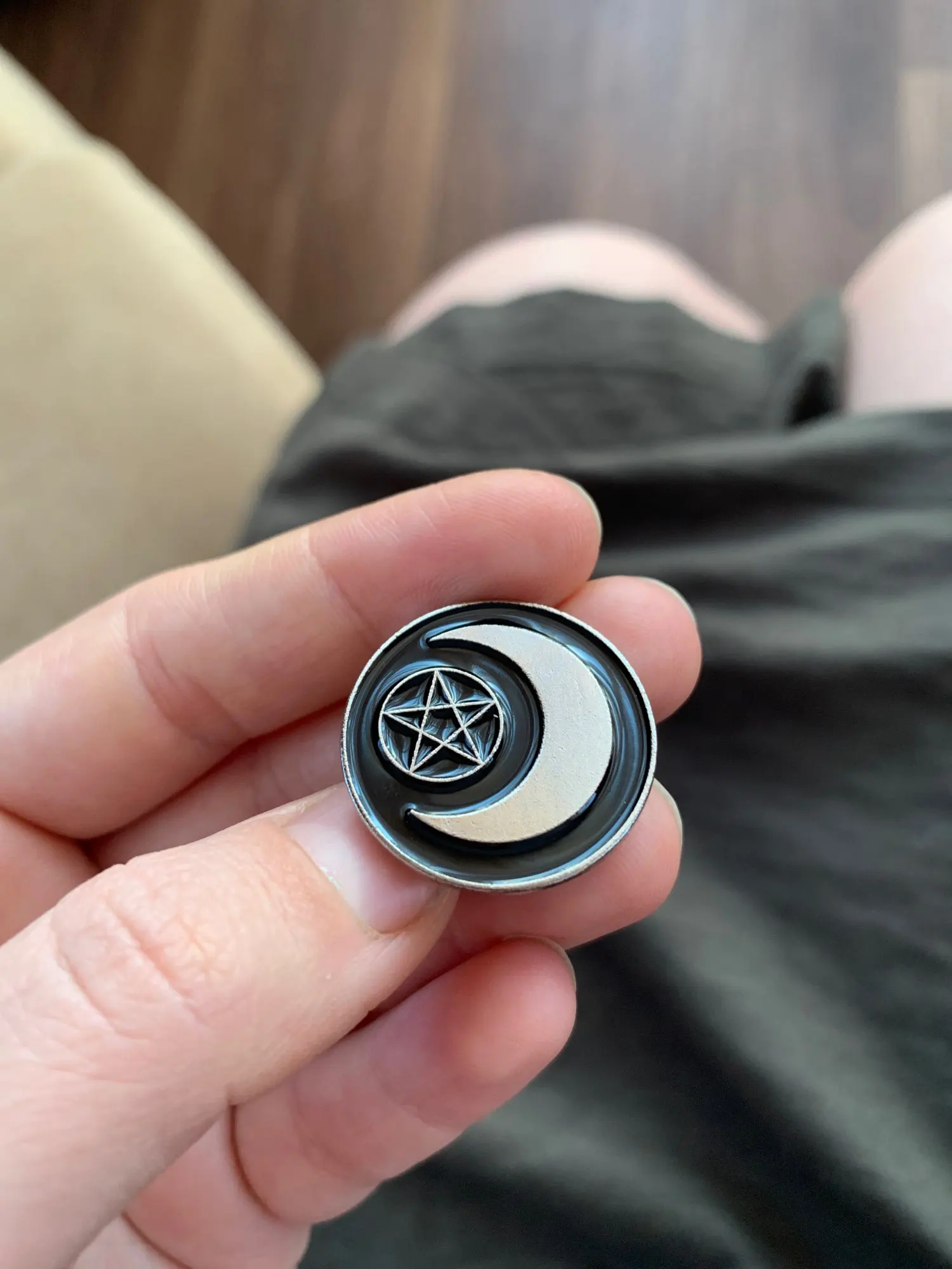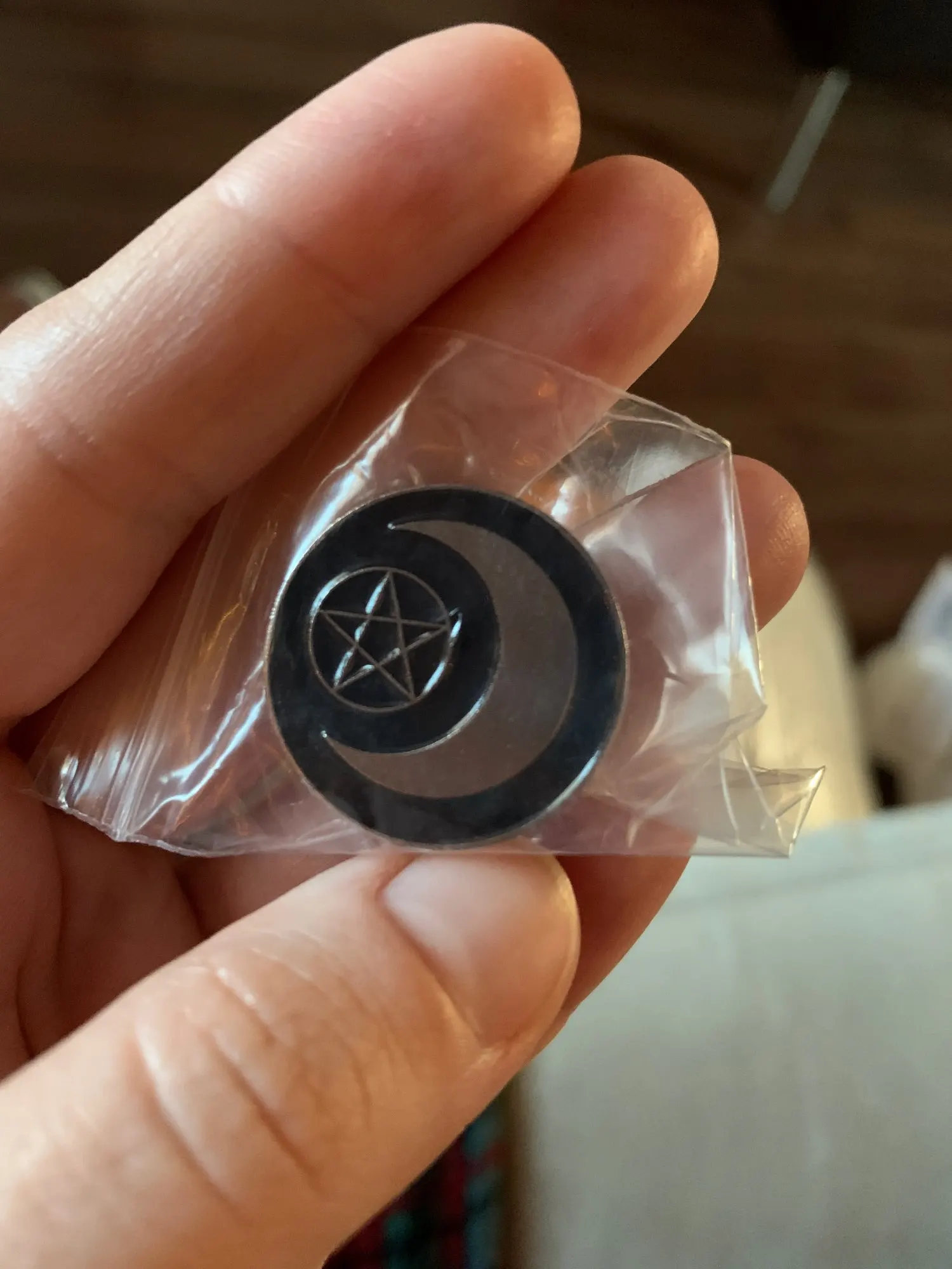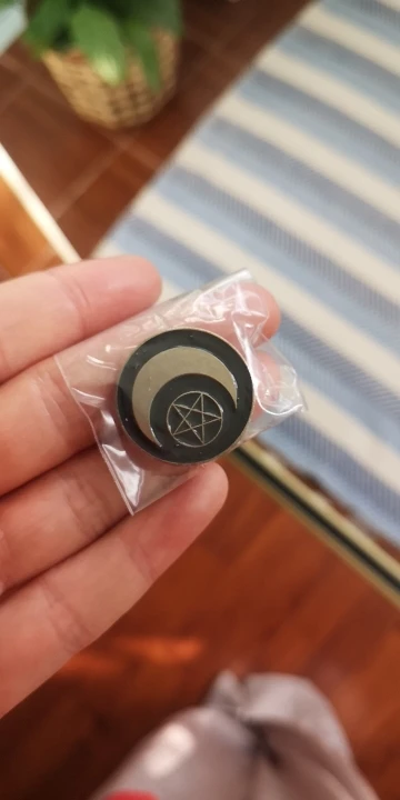 Отличная шпилька. Достойное качество. Я прикрепил его к своему чёрному кожаному чехлу. Выглядит очень колдовым. Нравится