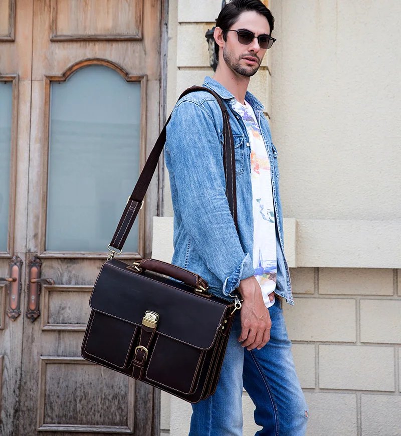 Мужская большая сумка-портфель Crazy Horse, кожаная мужская сумка из натуральной коровьей кожи, мужская сумка-мессенджер для ноутбука, деловая сумка через плечо