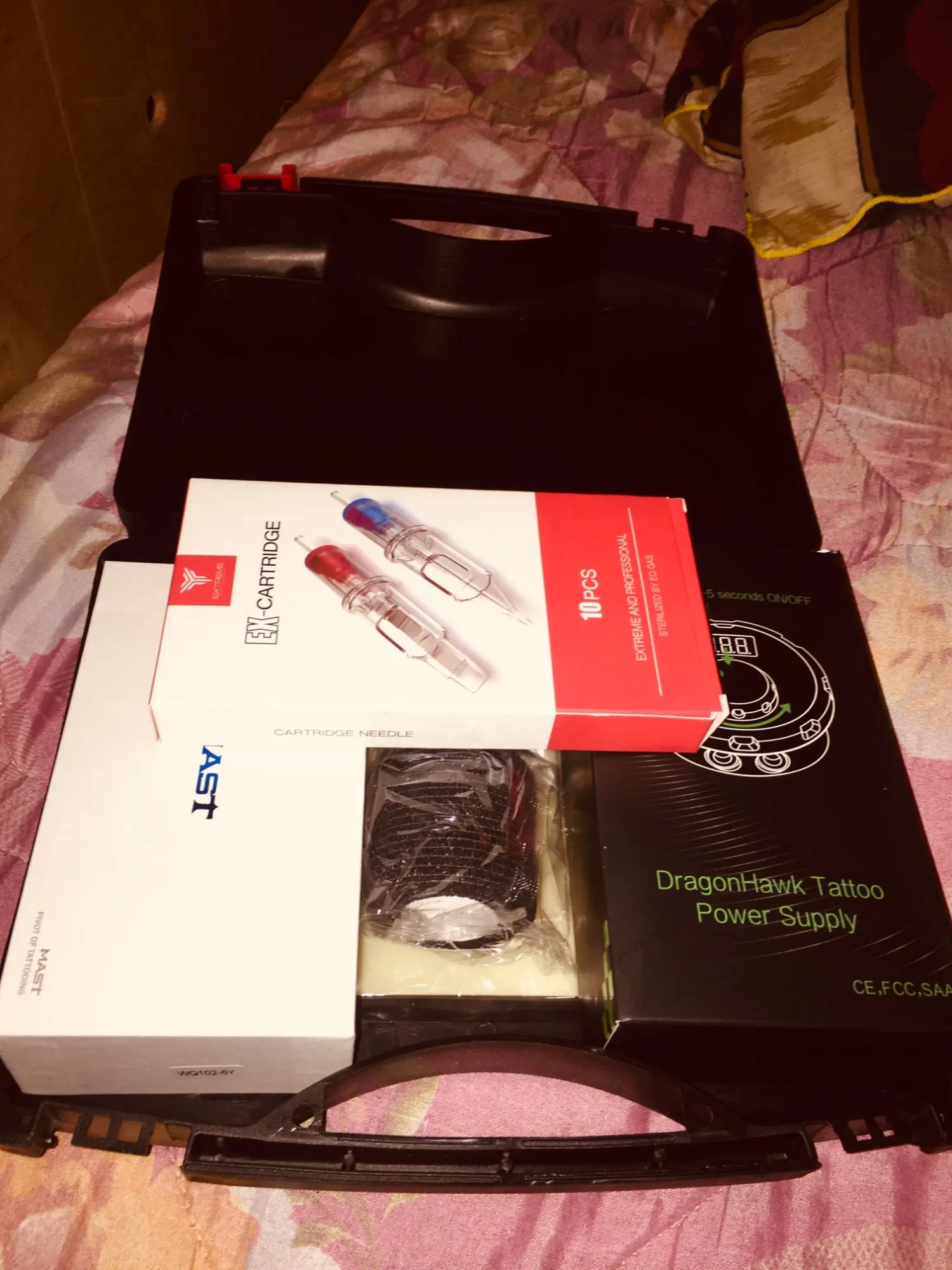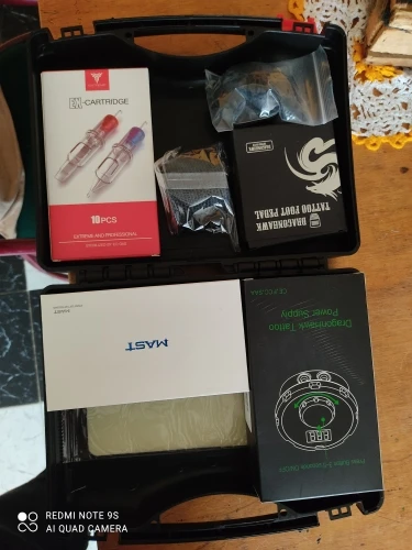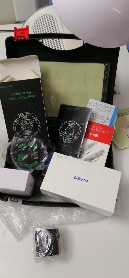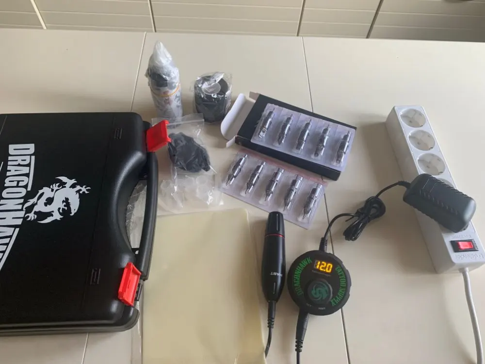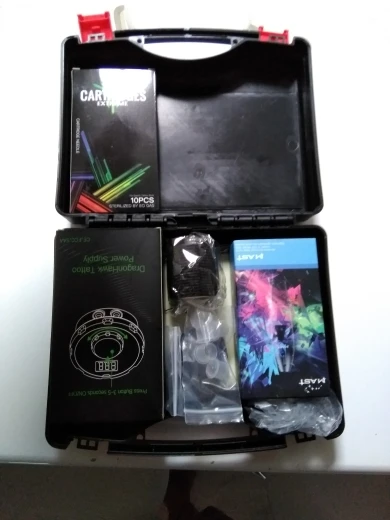 Набор для начинающего мастера ПМ. Был куплен по совету преподавателя. Комплект полный - силиконовый коврик, колпачки 5 шт, картриджи 10 шт, краска 150 мл ( примерно) , перчатки, липкая лента, сама машинка плюс блок питания, чемоданчик для переноски всего этого добра . Заказала 27.09, доставка в Питер 30.09 :)