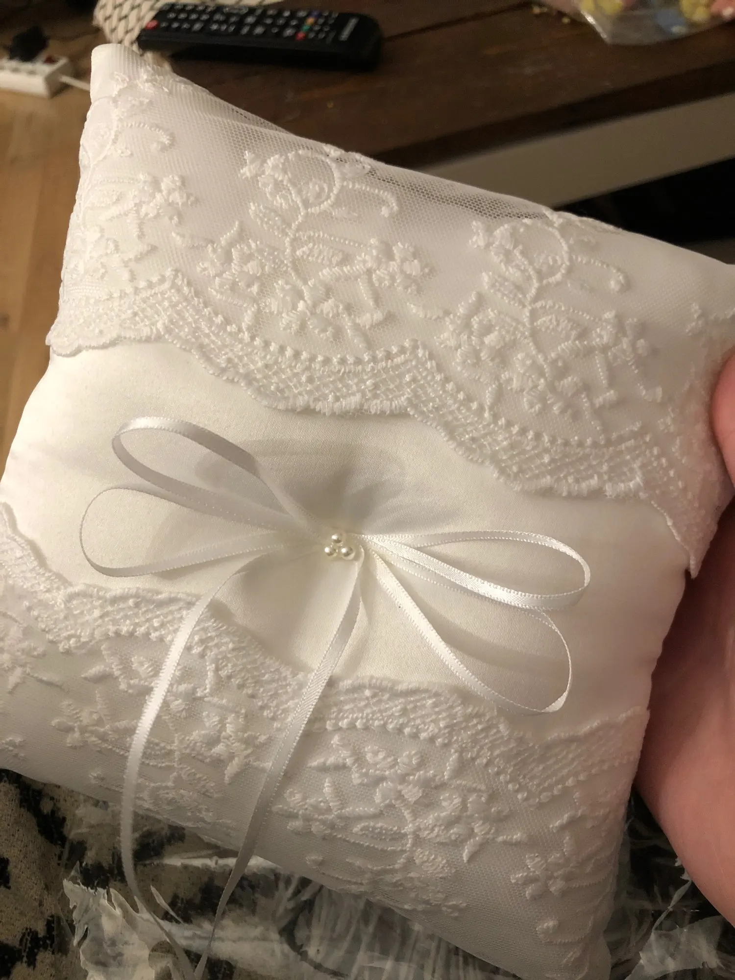 MagiDeal нежный Свадебная церемония, вечеринка жемчуг кружевное кольцо Подушка для помолвки Свадебное предложение декор белый