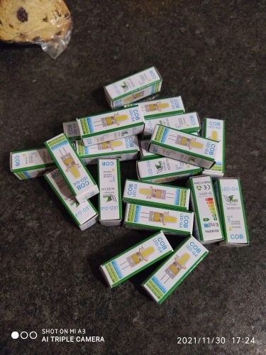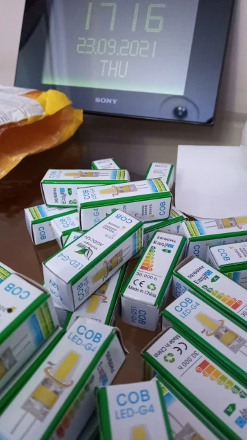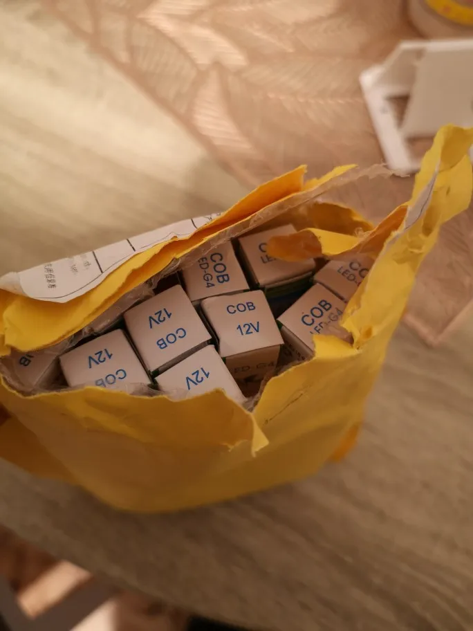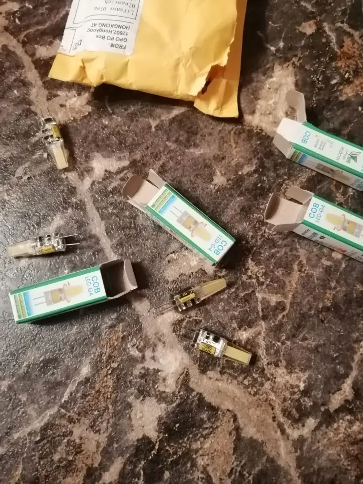 Доставка месяц, указали реальную стоимость товара для таможни. Покупаю каждый год перегорают. На фото в сравнении с 6 Вт которые покупал год назад. Очень маленькие а светят примерно также.