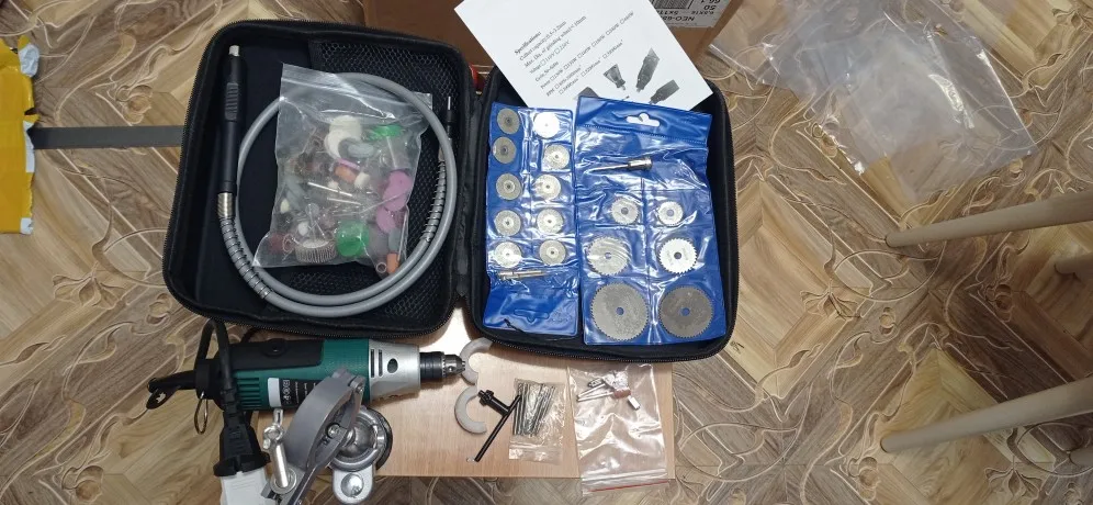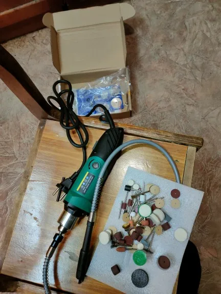 Вещь достойная, заказал 480 ватт. комплект вроде хороший, в подарок продавец положил комплект дисков по дереву за что ему отдельное спасибо. Мощностью явно не обделён, гибкий вал так же присутствует. Вообще рекомендую. брал второй, так как один маленький 180ватт брал для авто. этот же брал для дома.