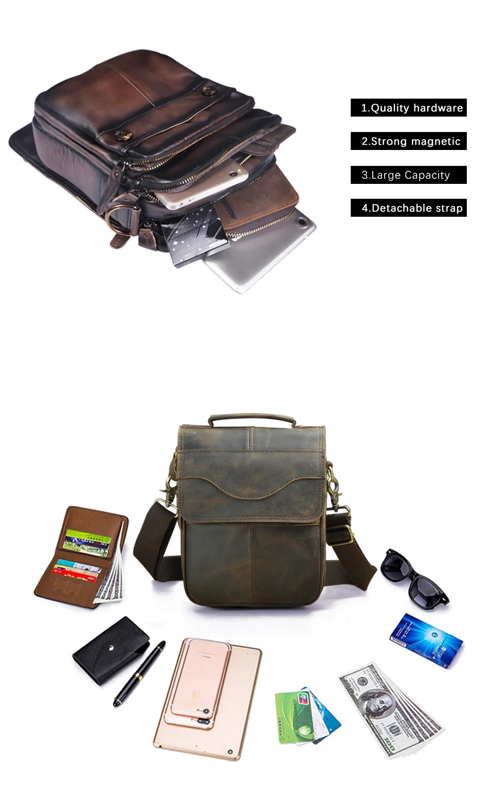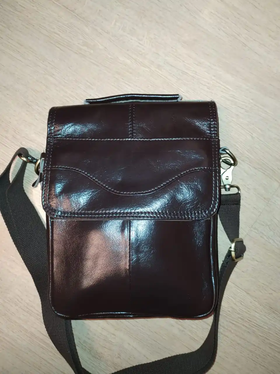 За такие деньги отличная, стильная сумка из натуральной кожи. Отсеков хватит для всех нужд, в передний карман под магнитным клапаном впритык входит телефон высотой 158 мм в чехле. Единственное: можно было сделать задний карман пошире и скрытые магниты, чтобы не мучаться с их стыковкой, но это мои придирки.