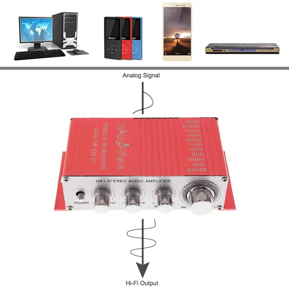 Двухканальный стерео-усилитель, 12 в пост. Тока, 5 А, 85 дБ, Hi-Fi, Вход CD DVD MP3 для мотоцикладома
