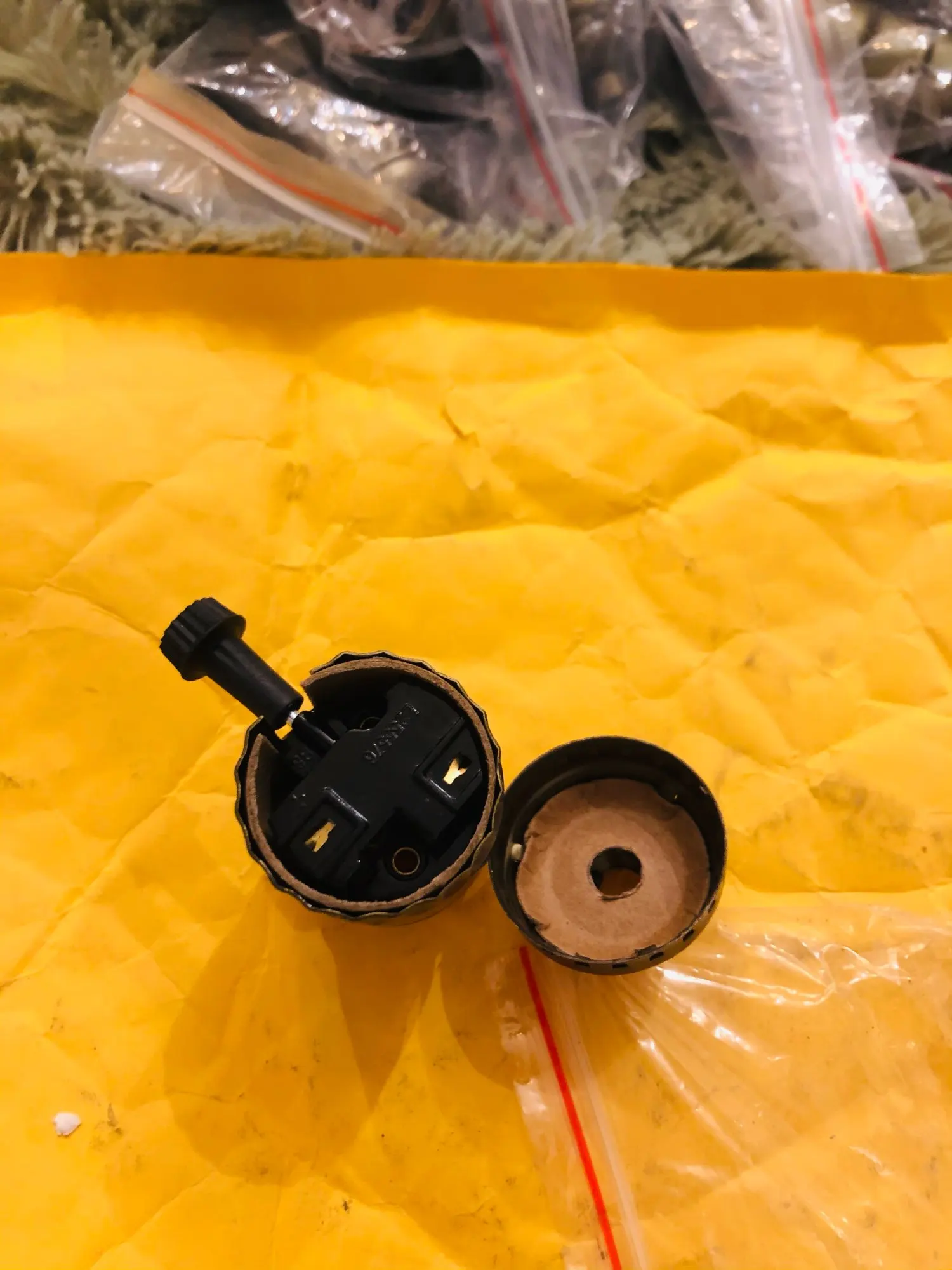 пришло быстро,соединение зажимается, без резьбы,тонкий металл,того цвета что заказано.изоляция-картон,вместо пластика или керамики,надеюсь диэлектрический,с таким не рискну делать настольную лампу ребенку
