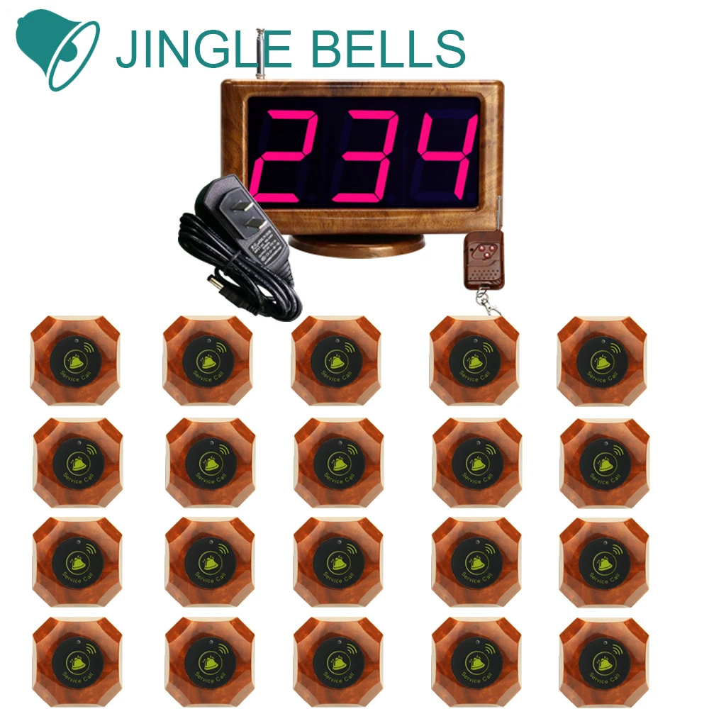 Беспроводная система вызова JINGLE BELLS, 20 кнопок вызова + 1 светодиодный дисплей, монитор, приемник, пейджер, оборудование для ресторана