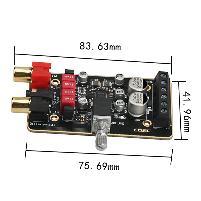 Высококачественная печатная плата из чистого черного золота, импортный WIMA Красный аудио конденсатор, на канал фильтрующий конденсатор большой емкости, специальный пользовательский черный чистой меди терминал, позолоченный аудио входной терминал, чистый черный четырехъядерный потенциометр громкости (без переключателя).