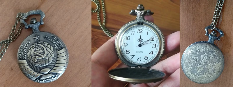 Мужские кварцевые карманные часы с подвеской-цепочкой, с эмблемой СССР, советский молот, серп, Россия, бронзовый подарок