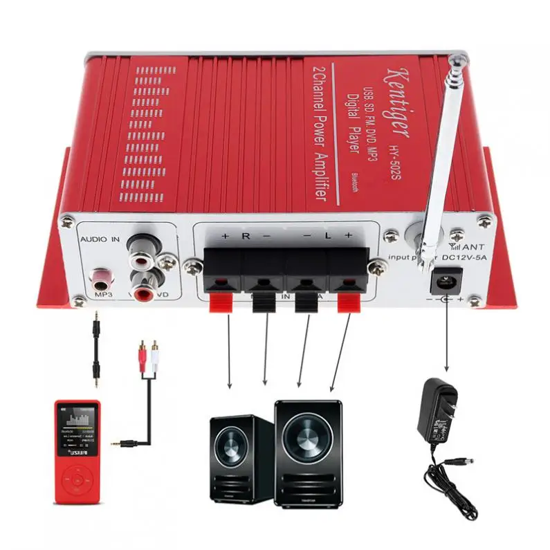 HY-502S 2-CH цифровой усилитель мощности звука Super Bass Bluetooth-совместимый автомобильный FM-радиоприемник с поддержкой SD USB DVD-ввода