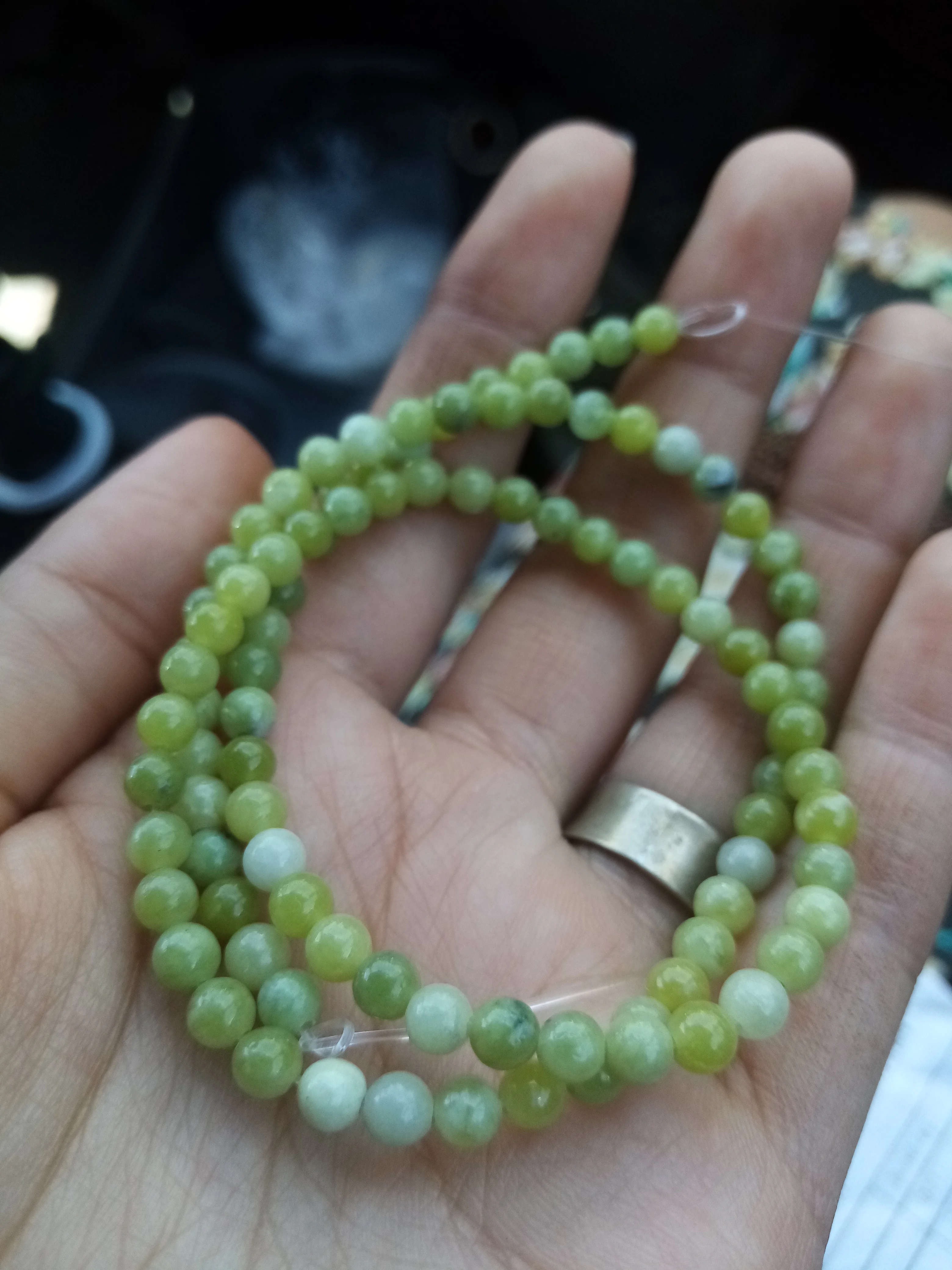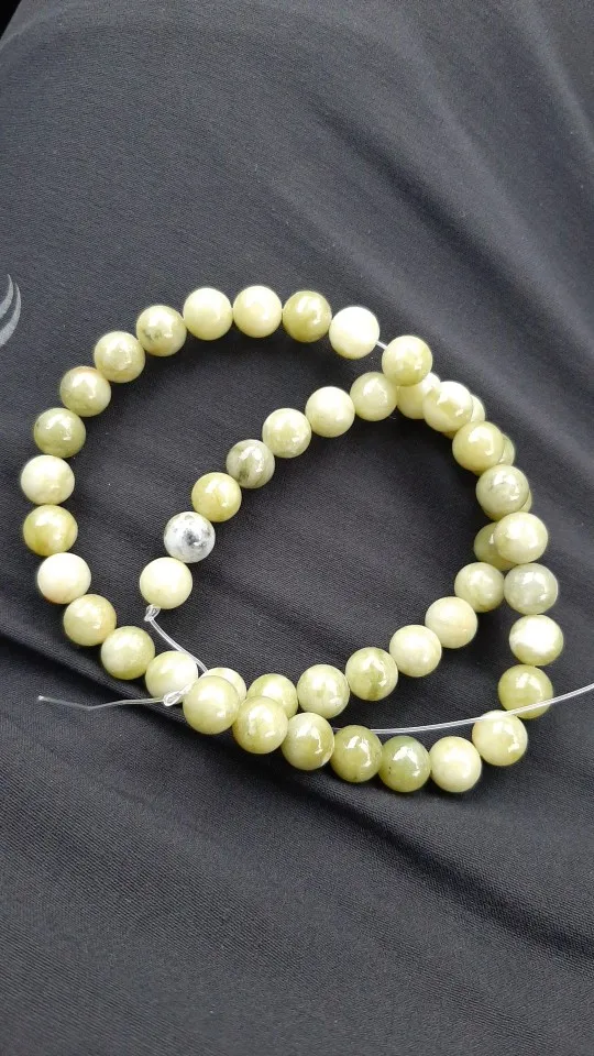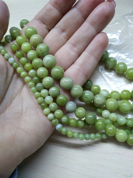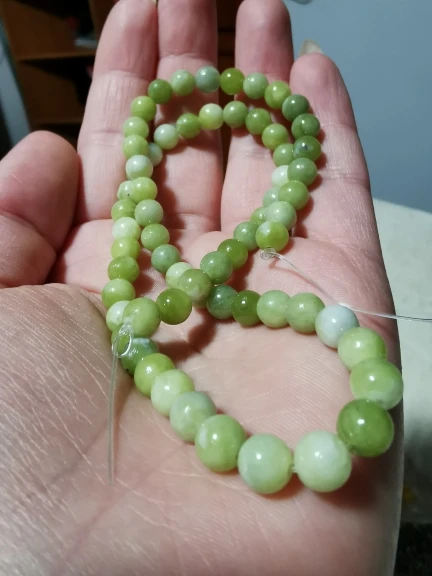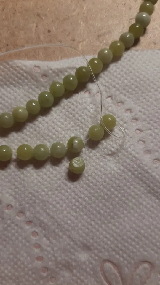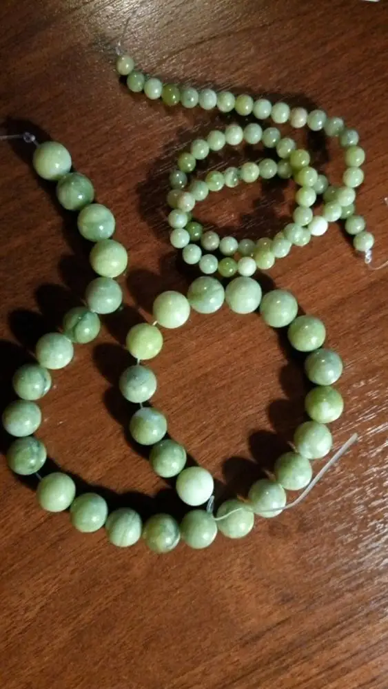 Эти бусины, безусловно, сделаны из камня, но это не нефрит: их легко царапают и ломаются.
