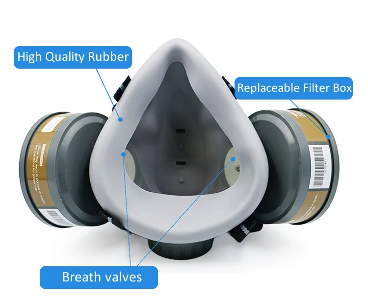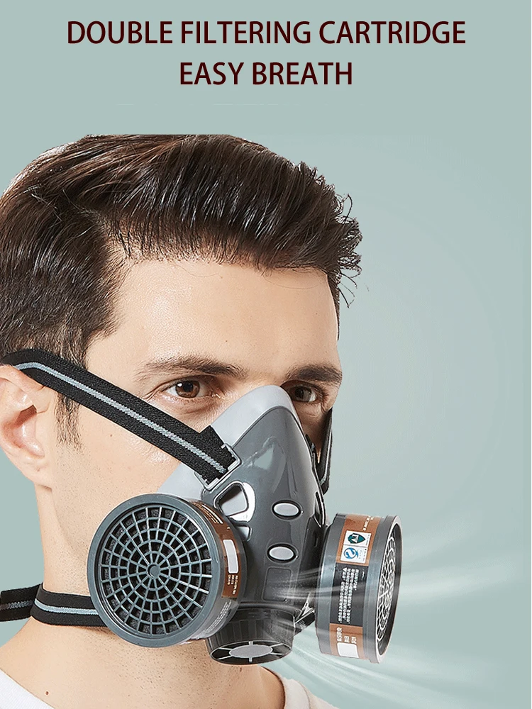 Полулицевой респиратор для защиты от пыли, газа, химических веществ, двойные фильтры, защитная маска для промышленного распыления органических паров