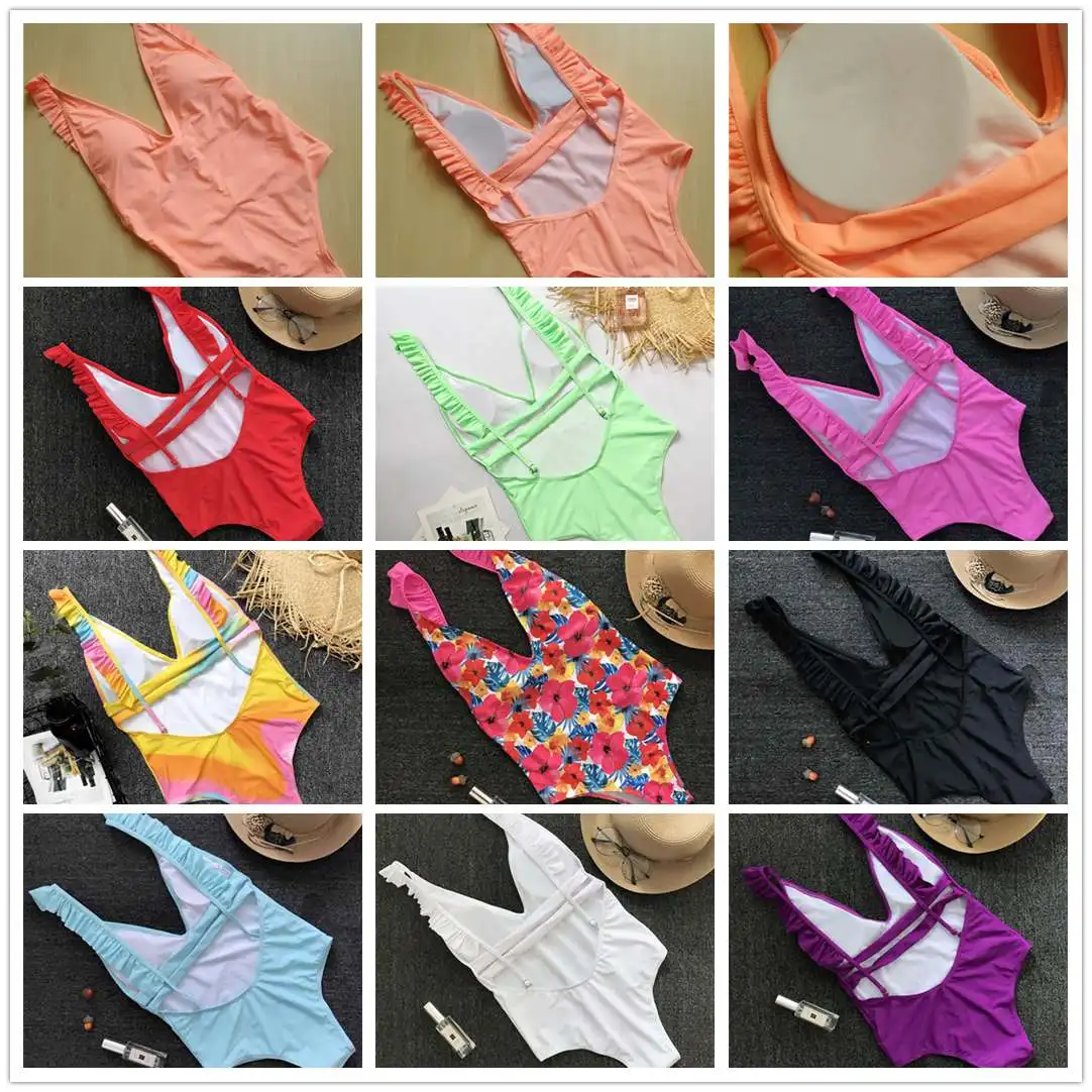 Женский слитный купальник, 10 цветов, 2020, с V-образным вырезом, с оборками, Дамский Монокини, V661