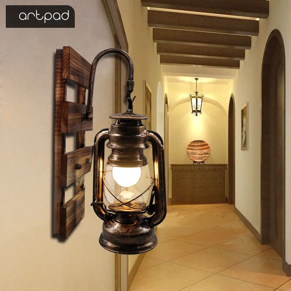 Artpad Американский Лофт промышленный Ретро настенный светильник AC90V-260V E27 металлический светодиодный регулируемый коридор Балконный светильник для внутренних светильников