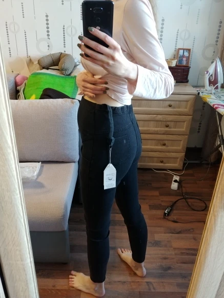 Прекрасные джинсы! Доставка 3 недели до Челябинской области. В жизни ношу размер М, но тут по отзывам решила взять L. Пока большеваты, потому что срок маленький, но дорастем)) на животе есть Резинка, с помощью неё можно фиксировать размер, материал качественный! Девочки берите не раздумывая!