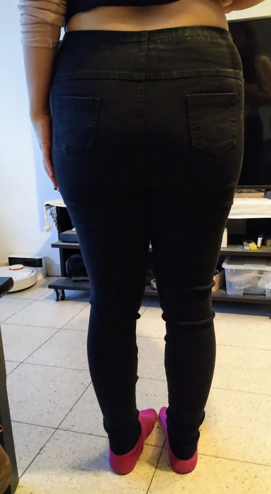 Джинсы просто супер. На мой животик (13 недель, двойня) сели, но всё же, ещё чуть велики в резинке, нужно подтянуть. На попе очень красиво, ноги обтягивают. Размер в точку. Очень быстро пришли, за 12 дней Новой почтой.